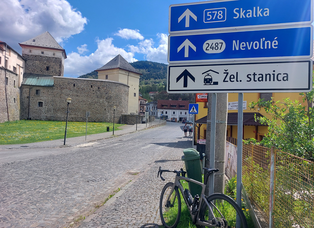 Hore na Kremnických Baniach ukazuje tabuľa odbočku na Skalku cez Krahule, 22 km. Ale netreba sa nechať oblbnúť, treba zliezť pekne do centra Kremnice a tam to začína naozaj. Parádnou vytriasačkou po zubatej dlažbe popred hradby a bránu na námestie. Paríž – Roubaix je šuviks, ale je to len krátky úsek: