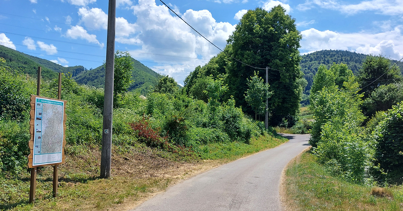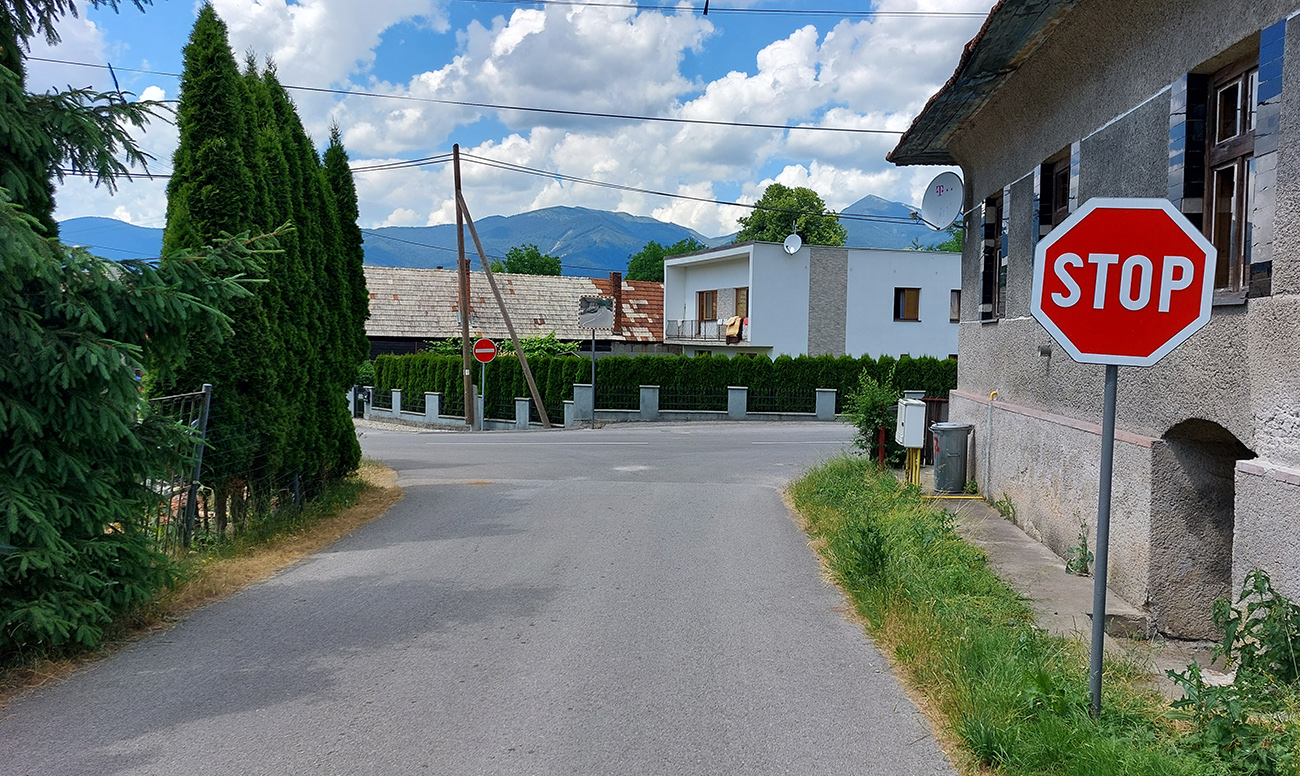 Cestou dole žiadne zákernosti, asfalt stále „drží formu“. Len miestami ak z bočných svahov ťahali drevo, trochu bordelu. Kto by nemal dosť a potreboval by potrénovať vyššiu intenzitu, pre toho je tu „nolčovská cintorínska stojka“ – kratučké, ale asi najprudšie miesto na ceste SNP (preto som tie dobré brzdy spomínal), ktoré začína odbočkou priamo dole v dedine. Až sa divím, že tam ešte nie je segment. Ale oplatí sa hore vylámať – odmenou je pohľad na panorámu hrebeňa Krivánskej Malej Fatry.