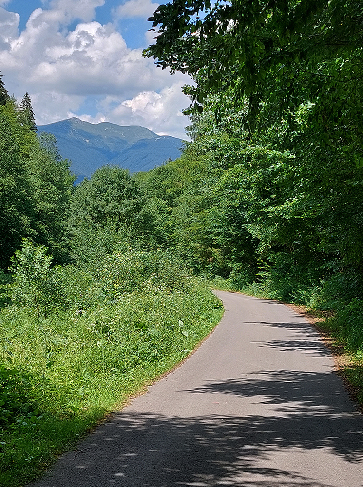 Od chaty potom už začína dolina. Keď je širšia, sklon je mierny, keď sa zúži, pritvrdí. Z lesa vtedy vykukujú aj skalné vežičky, vedľa zurčí potok a čím vyššie, tým je nad hlavou viac tieňa. Po takých piatich kilákoch cesta preskakuje potok a po ďalších pár stovkách metrov je tu záver cyklotrasy, ale najmä asfaltu. Dá sa samozrejme pokračovať po ceste pohodlne až do sedla Príslop, ale to už chce aspoň gravel.