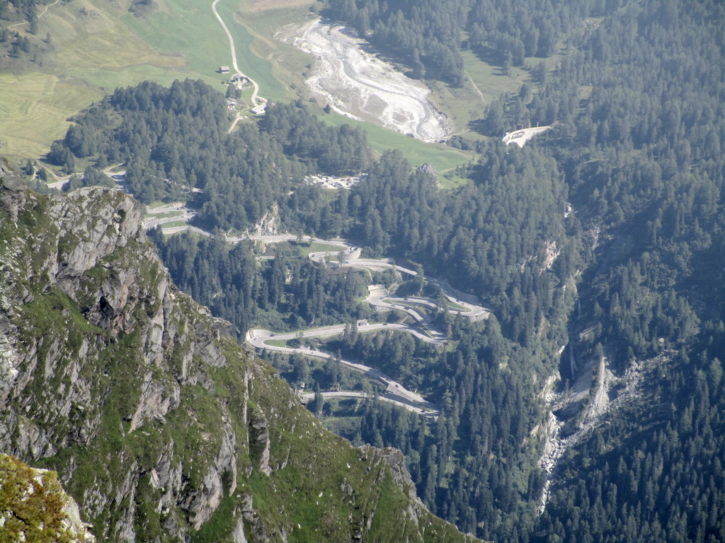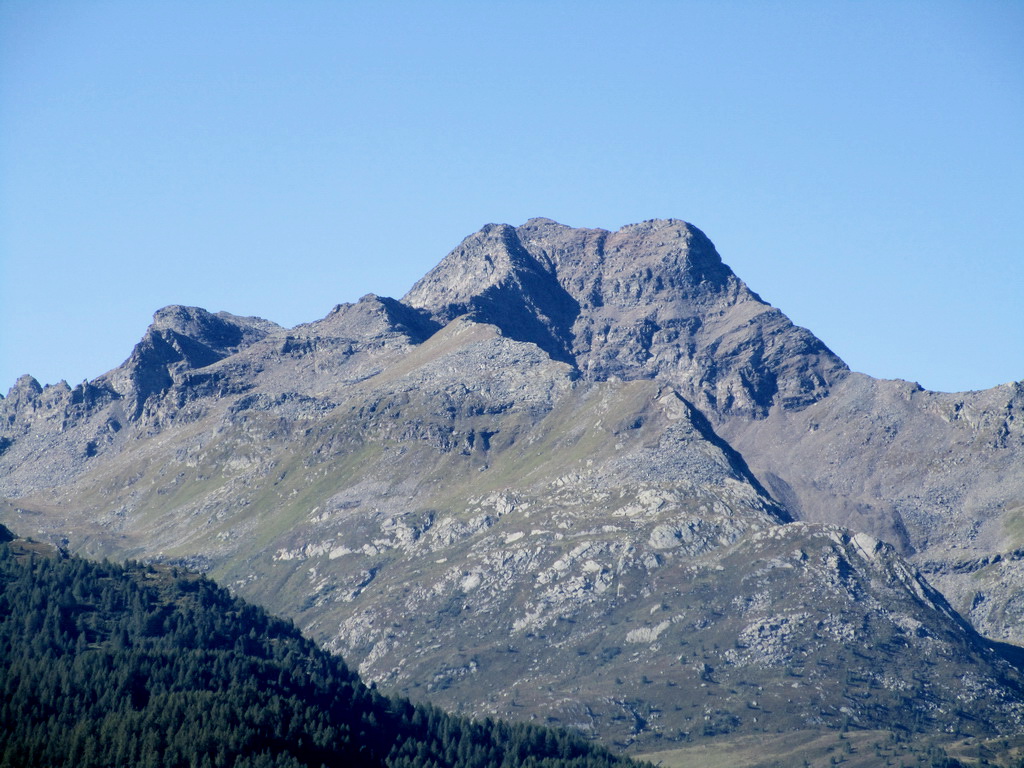 Parkovisko pred Malojou je bezplatné, nachádzam ešte voľné miesto a vyrážam okolo jazera. Po červenej značke prejdem okolo campingu a príjemným lesíkom stúpam traverzom hore. Nad lesom vchádzam do ústia doliny Val Fedox. Tu značka prechádza okolo salašu a za ním pokračuje ďalej už výrazne spustnutá. Vlastne nie je spustnutá iba farbu tu nahradili kamenní mužíci.
