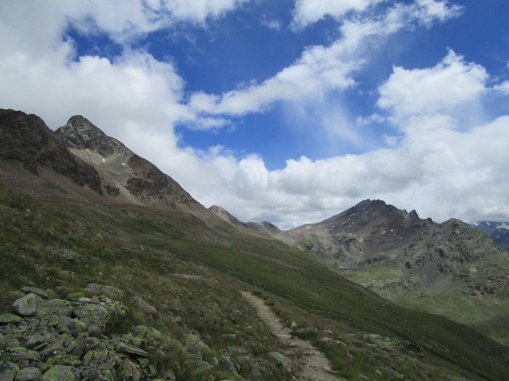 Traverzom som pokračoval až pod Piz Languard 3261m. Výstup na túto trojtisícovku vedie po značkovanom chodníku. Výhľady sa oplatia, samozrejme treba mať počasie, ja som si chvíľu počkal a oplatilo sa.