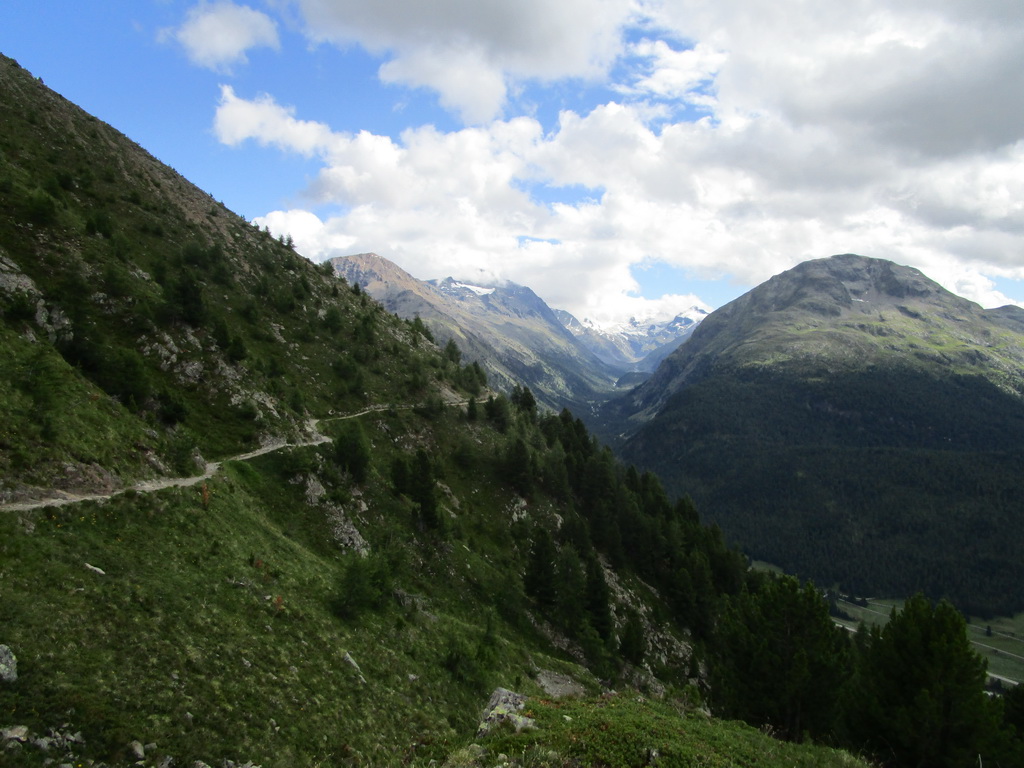 Na návrat som si zvolil spodný traverz aby som nešiel tou istou trasou. Popri hornej stanici sedačky nad Pontresinou som si tentoraz vychutnal výhľady a pohľady opačným smerom. Po traverze na hranici smrekovcového lesa som sa dostal do ústia doliny Muragl a zostúpil k autu.