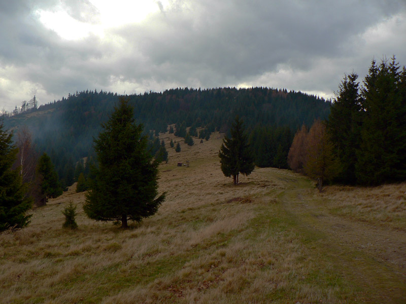 Ja som na pešo zvolil zelenú, ktorá sa mi zdala podľa mapy krajšia ako šľapanie po asfalte. Aj ona ma bez problémov vyviedla nad mesto - z centra cez sídlisko a popod vlek. Kus strmej zvážnice a už som na zarastajúcich lúkach a blížim sa k osade Kýčera. Všade vidieť stopy intenzívnejšieho využívania tohto kraja v minulosti – božia muka, lavička pri ceste, dokonca cintorín a už som v osade na križovatke. Cesty štrkové, v lese hlinené, parádne široké, ideálne na bajkovú túru. „Hrebeňovka“ sa mierne vlní pomedzi samoty, len miestami v lese je trochu rozbitá od traktorov. Rodinným autom je tu off road.