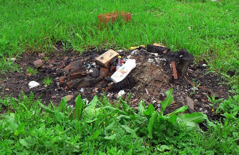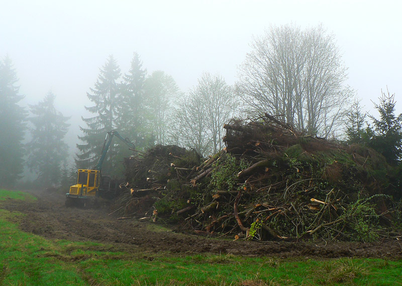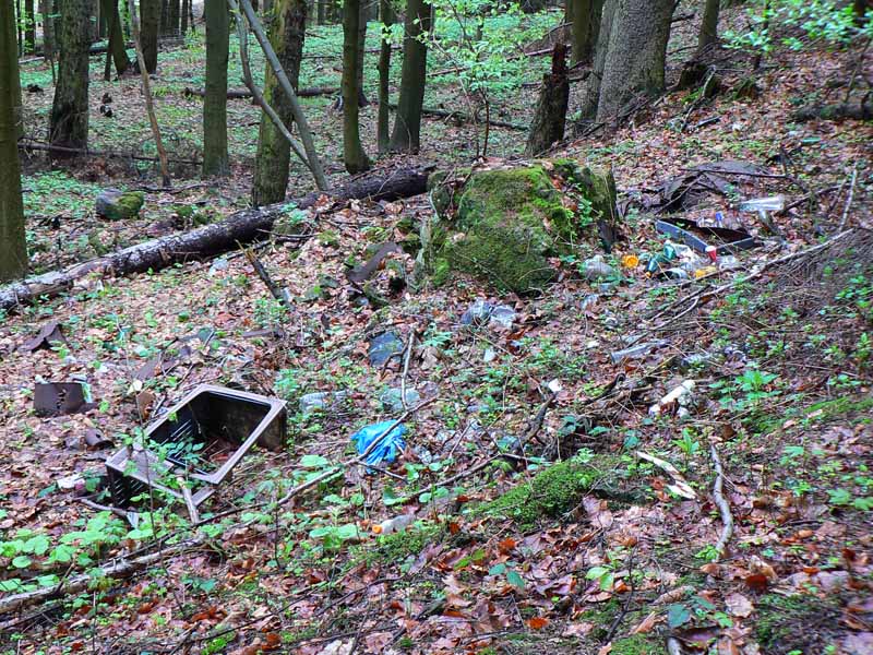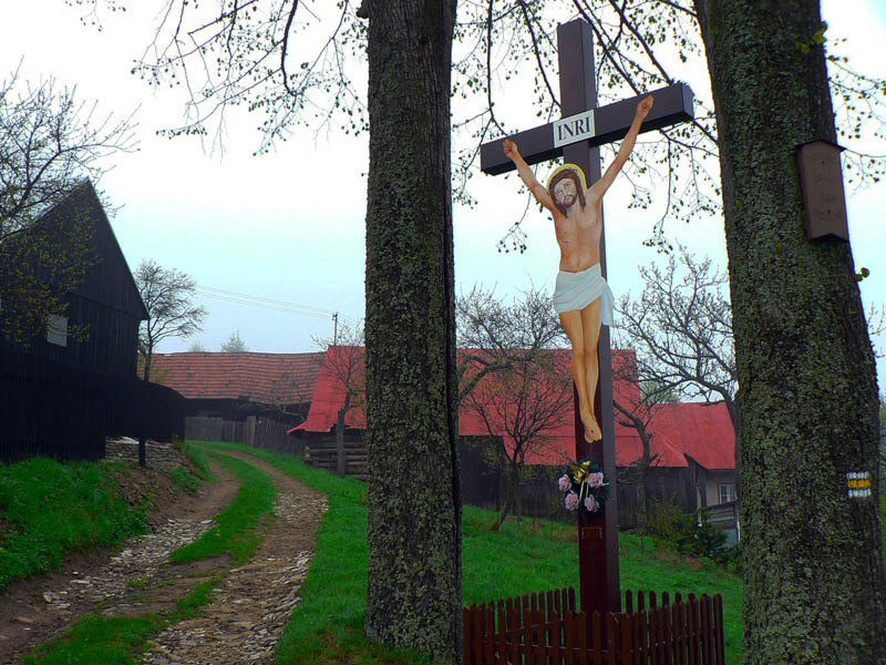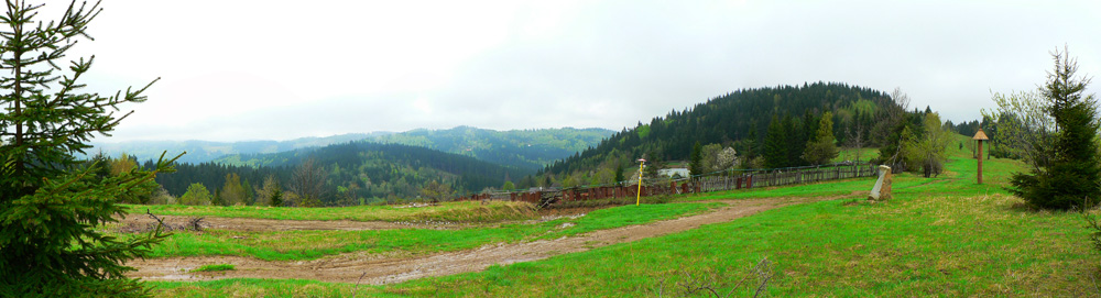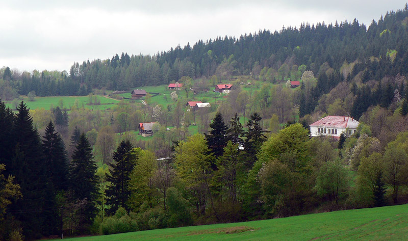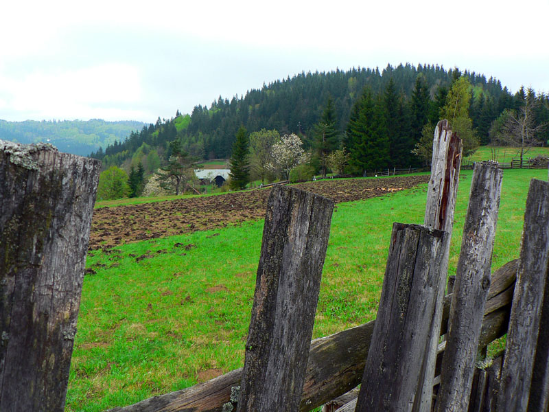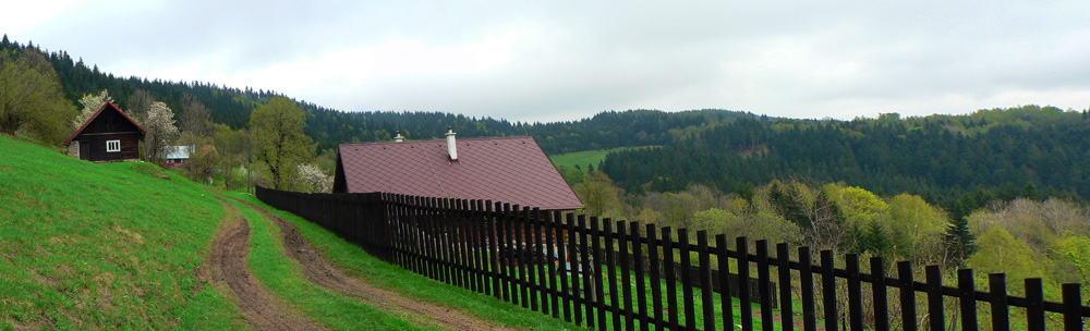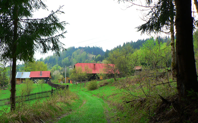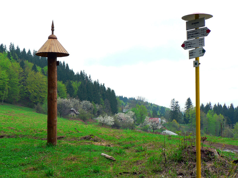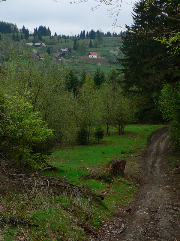 Najhorší bol práve úsek cez Jakubovský vrch a okolo sedla pod Grapou, lebo tam akurát ťažili dáku kalamitu. Keď som spredu začul mrmľanie (nie medvedie, ale také naftové), tušil som, že bahenným zábalom neuniknú moje vibramy :-) Ale zas, mokrá tráva na lúkach ich chytro umyla. Čo ale dážď nezmyje, to sú tony odpadu všade, kam oko dovidí – hlavne plastové fľaše a plechovky od piva. Že sa človek blíži k samote je jasné, keď prejde okolo smetiska s pneumatikami, starými televízormi a plnými vrecami bordelu. Dreveničky síce vypipľané, dvory do čista vymetené – ale hlavy tiež.