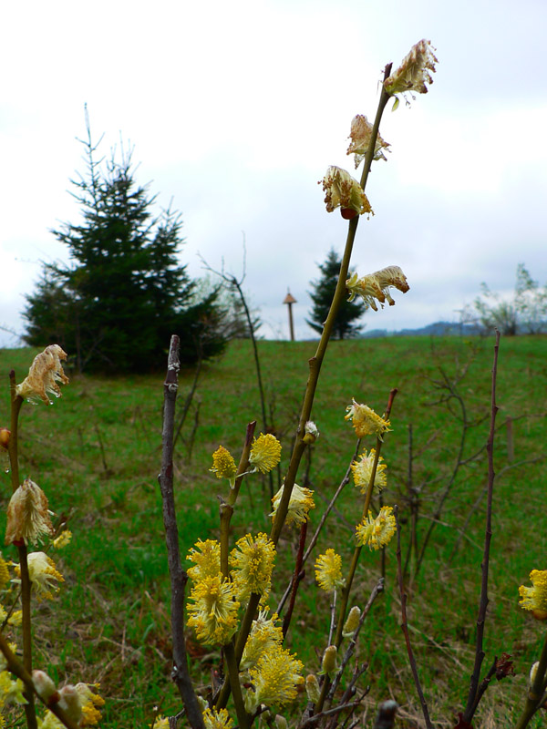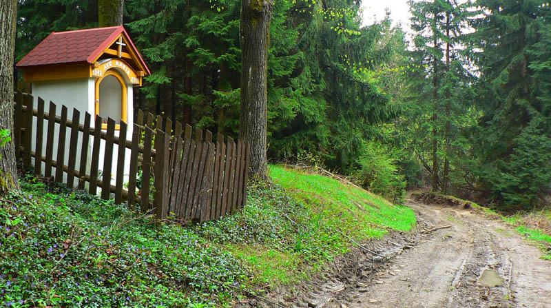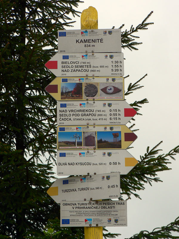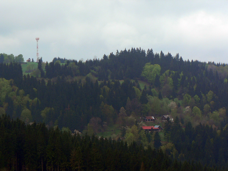 Voľajakú smolu mám v tých Javorníkoch – ako som tam, furt je hnusne. Tentokrát som síce vedel, že do väčších výšok netreba ísť, že tam budú mraky. Ale som podcenil severnejšie šírky, doma v Turci sa spravilo pekne :-) Ešte na stanici v KNM som sa rozhodoval, či nejsť radšej na Ľadonhoru, ale tam to vyzeralo tiež neutešene. Tak zvíťazil pôvodný „okruhový“ plán: z Nesluše cez osadu Mičekovci na hrebeň k „Potvorovi“, odtiaľ po červenej na západ na Kamenité k rozhľadni, čelom vzad a nazad – ale iba pod Jakubovský vrch. Odtiaľ dolu z hlavného hrebeňa, po modrej a žltej cez osadu Ostré nazad do Nesluše, kde sa vynorím z opačnej strany. Všetko klaplo, len cestou nazad som už neprešiel Jakubovský vrch, ale od kaplnky pred ním som to na modrú strihol „skratkou“ cez osady Hutyrovci a Grešákovci – oveľa lepšie, odporúčam!