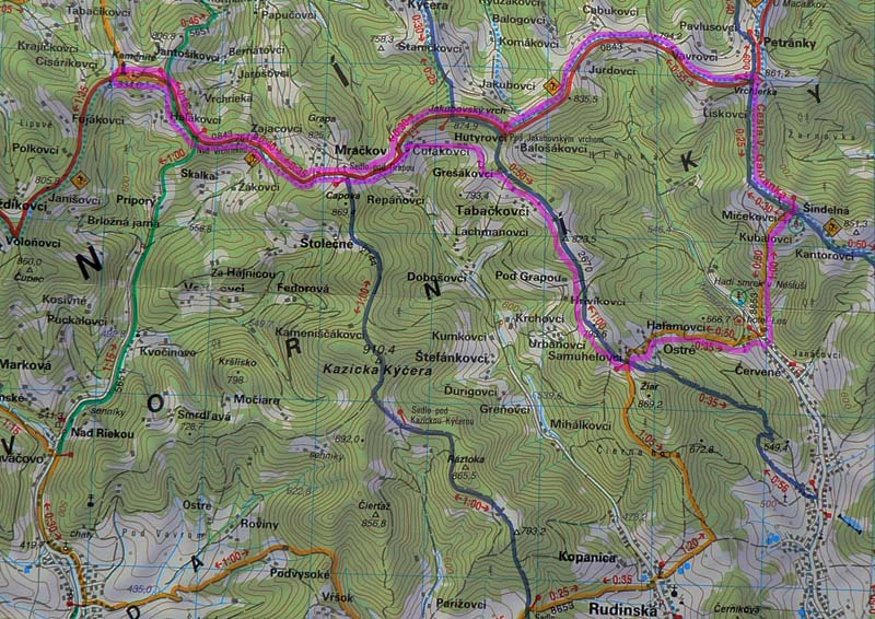 Trasa je to zhruba na 7 hodín, až na začiatočné strmšie štveranie lesom na hrebeň k osade Mičekovci (tak 40 minút) pohodová prechádzka zvlneným terénom. Teoreticky by sa to dalo polietať aj na bajku, lebo je to takmer všetko po lesných a lúčnych cestách. Strmší výstup/zostup po chodníkoch sa dá obabrať obchádzkami k samotám. Ale to by muselo byť veľmi dlho veľmi sucho :-) Lebo tu vládnu gazíky, zetory a vetriesky a tie dokážu pevnú cestu aj za sucha na nepoznanie „skvapalniť“. V lese. Na lúkach to bolo aj deň po lejakoch pohodové.