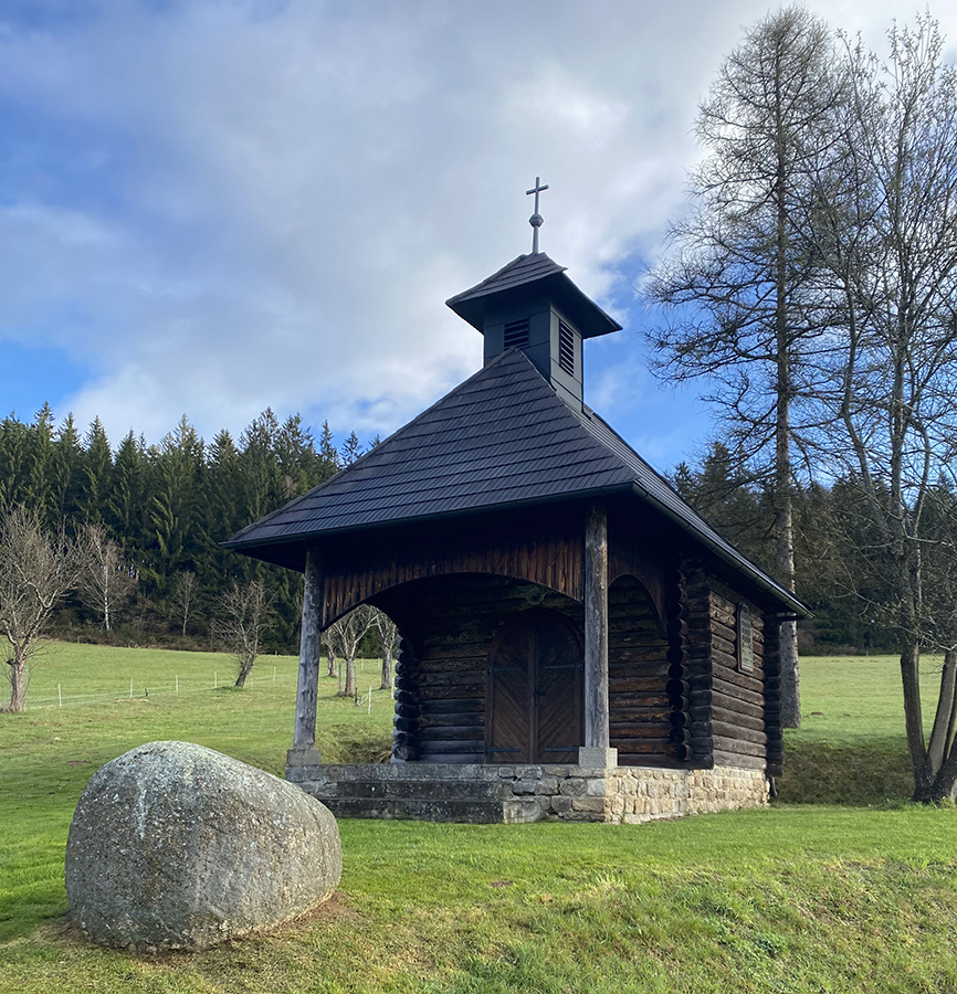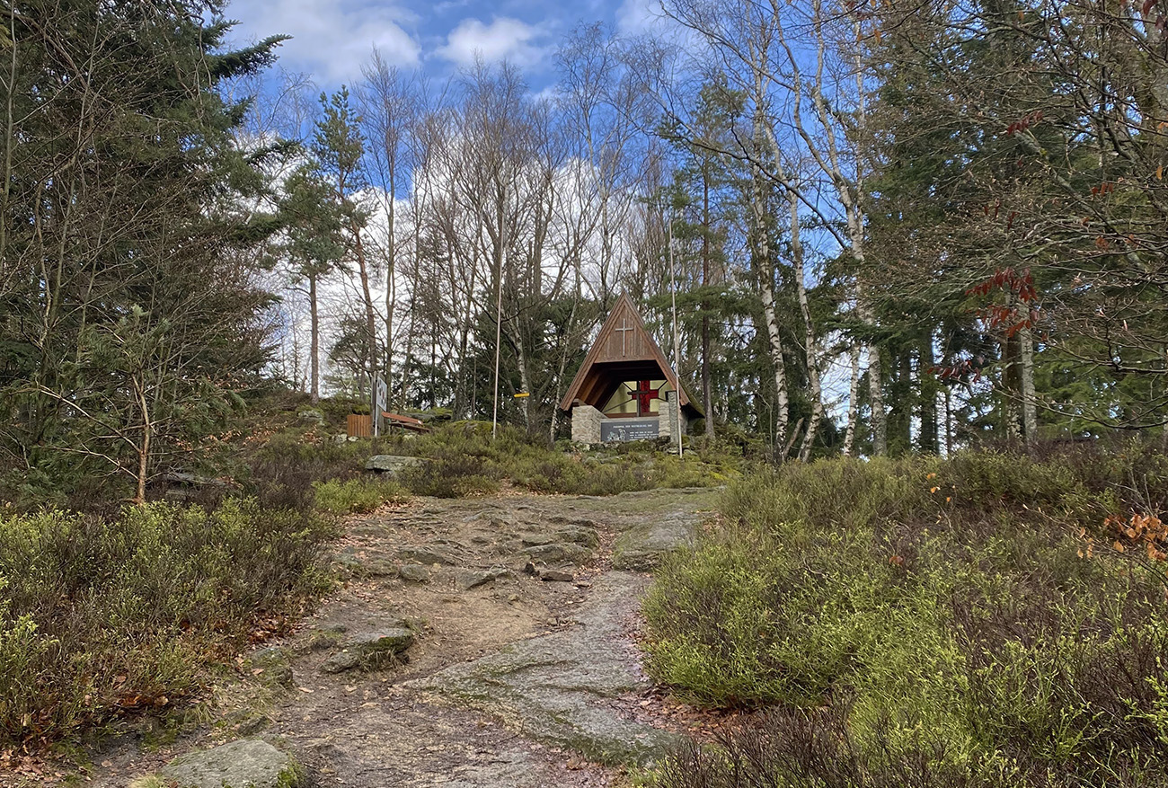 Prichádzam na Mandelstein. Opäť kaplnka a pri kríži aj kontrola.