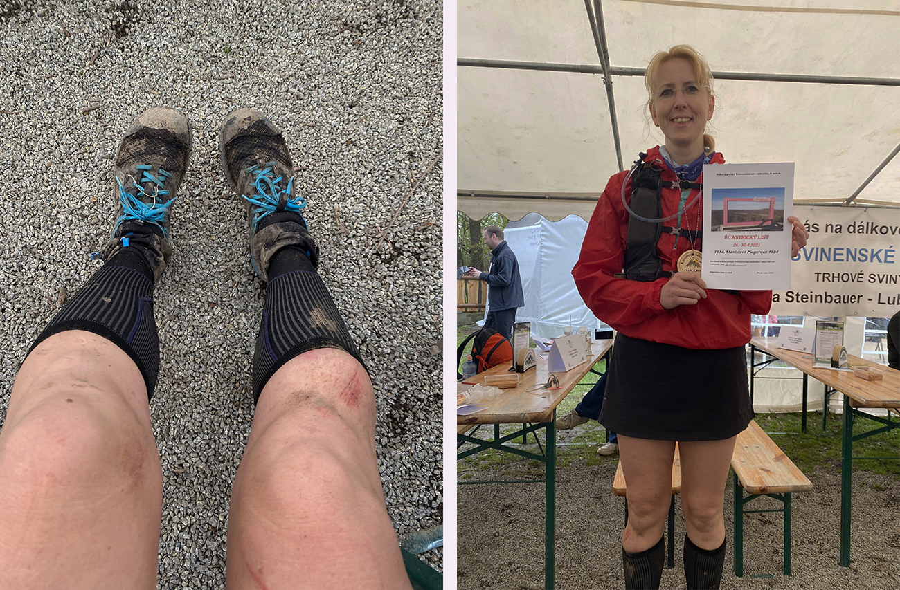 Neskôr sa dostávam ku štvrtej občerstvovačke, 23 km pred cieľom. Je to luxus: podáva sa aj teplý hovädzí vývar. Napriek tomu ma začína triasť. Radšej rýchlo odchádzam. Uzatváram so sebou dohodu, že z každého kilometra budem 200 m chodiť a 800 m bežať. Odsýpa to. Prichádza posledná občerstvovačka. Striedam chôdzu a beh. Dohoda vychádza. 10 km pred koncom však míňam kontrolu. Demotivuje ma to. Takže odteraz už len rýchla chôdza. Keď vidím cieľ, cítim sa strašne vďačná. Všetkému a všetkým :-) Končím na 20. mieste s časom 18:38. Bolo nás 75 účastníkov.