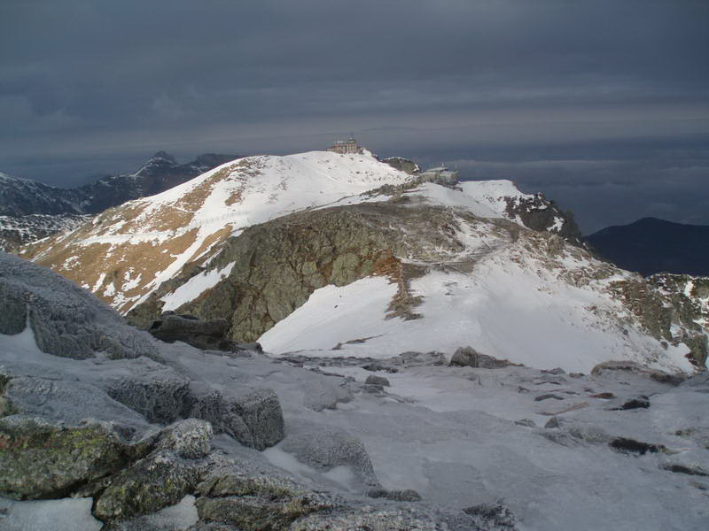 Na Kasprovom vrchu je celkom pohodové počasie, aj keď očakávaný plech sa nekoná. Nálada je pohodová, smejeme sa na domácich „horaloch“, ktorí sa celí poondení boja prejsť kúsok po snehovom poli do Suchého sedla. V lodičkách a v botaskách sa tam človek skutočne zapotí.
