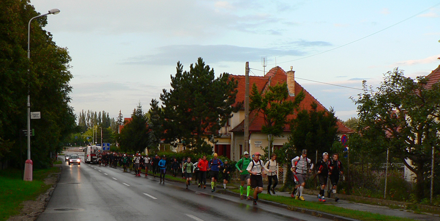 Ale prišla sobota, 21. september, ráno ideálne chladné na "rýchlejšiu turistiku", len trochu vlhkejšie. Mraky sa prevaľovali, sem tam slnko vykuklo. Aj spŕchlo pred štartom a hore na hrebeni keď zafúkalo, z mokrých stromov pršalo druhý raz. V kalendári skoro rovnodennosť, takže kto chcel prísť za vidna (asi do 19:00), musel zlomiť traťový rekord. Takých kandidátov sa na štartovke nazbieralo dosť - minimálne prvé dve dvojice z tohoročnej "nadzvukovej" Stíhačky. A čakalo sa, čo predvedú neznáme zahraničné mená.