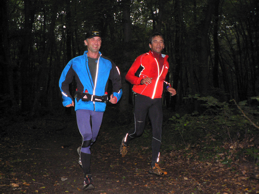 Prvá trojka dorazila do cieľa ešte za vidna a všetci rýchlejšie ako vlaňajší víťaz, aj takéto postupné posúvanie limitov je obraz progresu terénnych ultrabehov v posledných rokoch na Slovensku. Lenže potom hodinová diera a netrpezlivé čakanie, kedy dorazia ďalší, veď už by tu mali byť - lenže dorazili mestskí policajti! A vraj čo blbneme, veď pod Gričom prebieha poľovačka!!! A či organizátori behu nahlásili akciu úradom a také tie policajné oné... Našťastie len trochu planého poplachu, poľovníkom sa hádam podarilo vysvetliť, že diviaky sú síce podobne zaprasené a aj smrdia ako bežci po 100km, ale nemajú čelovky :-) Žiadna zabijácka rojnica v lese sa nekonala, len sa trochu mulatovalo na poľovníckej chate, že?