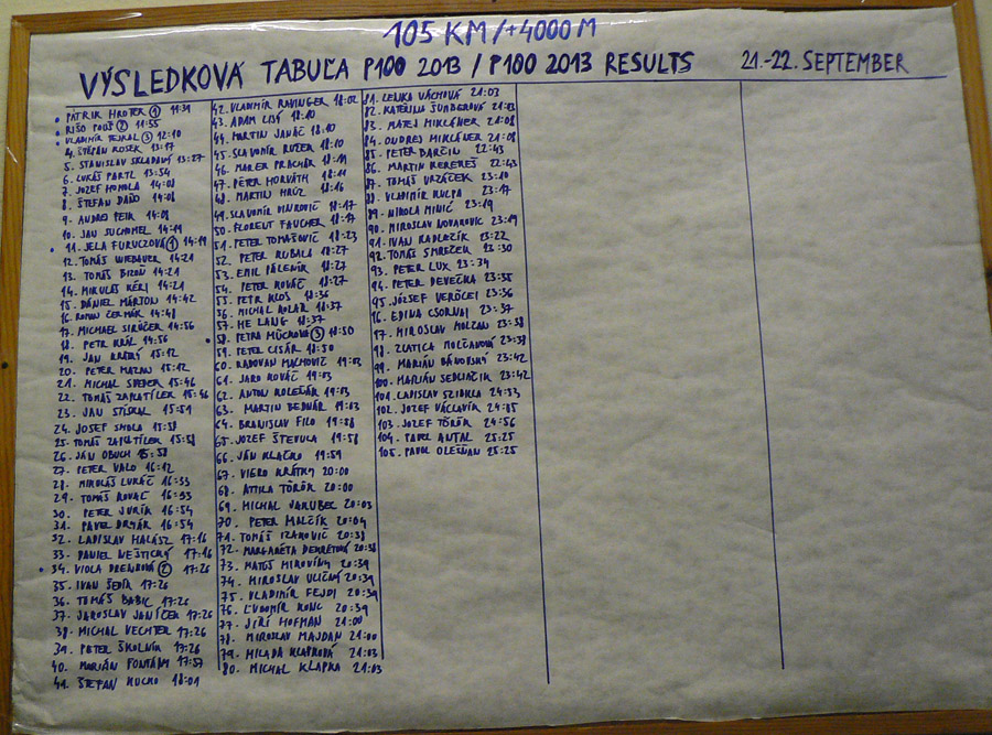 Po malom "rodinnom" alpskom puťáku tu teda máme poriadne podujatie z domácej dielne :-) Ultrabehom na Slovensku sa posledné roky začalo nejako výrazne dariť, výnimkou nie je ani P100, ktorá aj tento rok podrástla. Papierový limit 220 bláznov, ktorý si stanovili organizátori, bol naplnený (dokonca vraj 9 národností sa zúčastnilo), aj keď niektorí sa včas vyliečili a neprišli. Možno aj pod vplyvom počasia, lebo trať bola skoro celý týždeň pred štartom výdatne kropená, aby sa neprášilo. Dokonca sa chvíľu podľa predpovedí zdalo, že to do štartu neuschne, ale zamrzne :-)