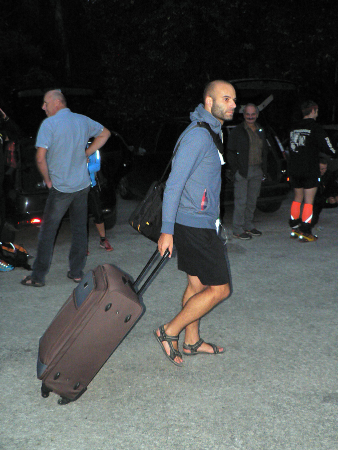 Po štarte: Ten s kufrom (tu už ho našťastie za sebou neťahal) vyletel ako divý, veď ako vždy. Za ním ďalší asi siedmi a rýchlo sa sformovala silná skupina, za ktorou rástla diera. Pohodári zozadu len nechápavo krútili hlavami, kam sa tí blázni ženú. Skupina sa rýchlo rozdelila na dve prvé dvojice a pomaly strácajúci druhý voj, kde sa presýpali asi piati ultras. Len obhajca si kdesi vzadu obhajoval pred davom frajerku, nie víťazstvo, o to malo čelo jednoduchšiu robotu.