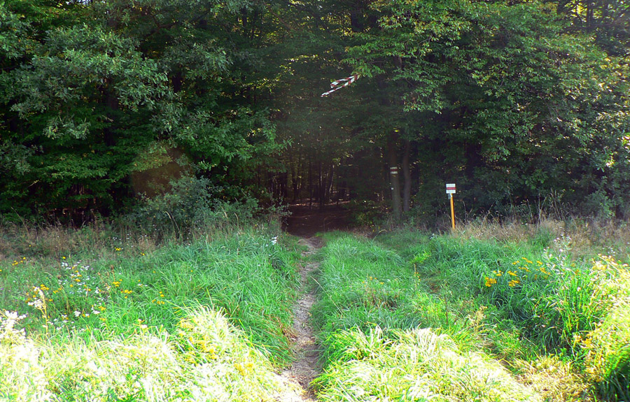 Zato pod horárňou Krížne cesty pravý opak, po zostupe vychádzam na zvážnicu dopŕhlený a zablatený až za ušami. Tu by som mal jeden návrh: práve tu by sa dala trať vyfáborkovať na krátkom úseku po ceste, napojila by sa na červenú presne na konci toho blbého úseku. Nejde o blato či žihľavu, ale v tej tráve nevidno pod nohy a dosť slizkých šutrov sa tam ukrýva. Veľmi nepríjemný úsek je to.
