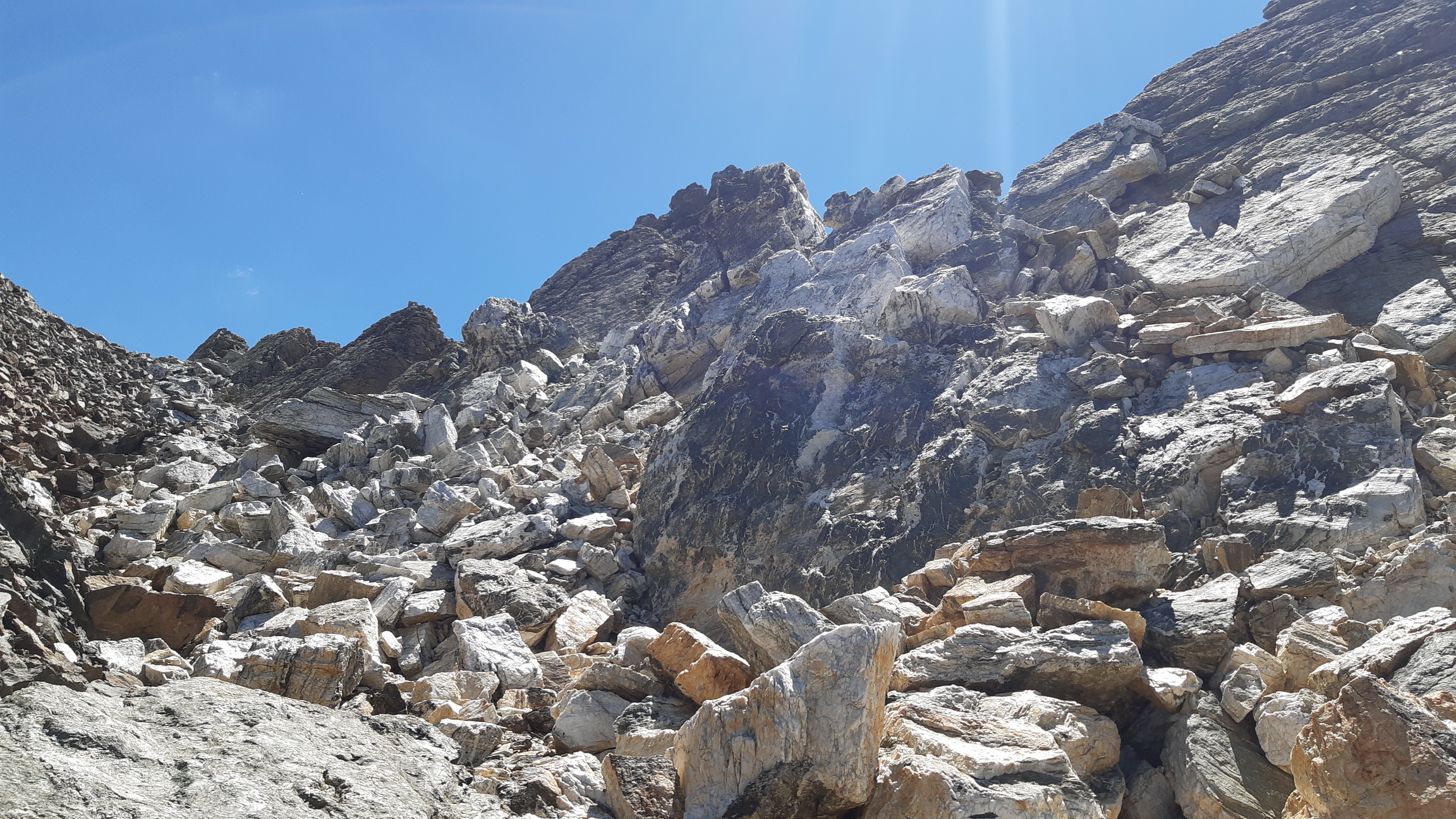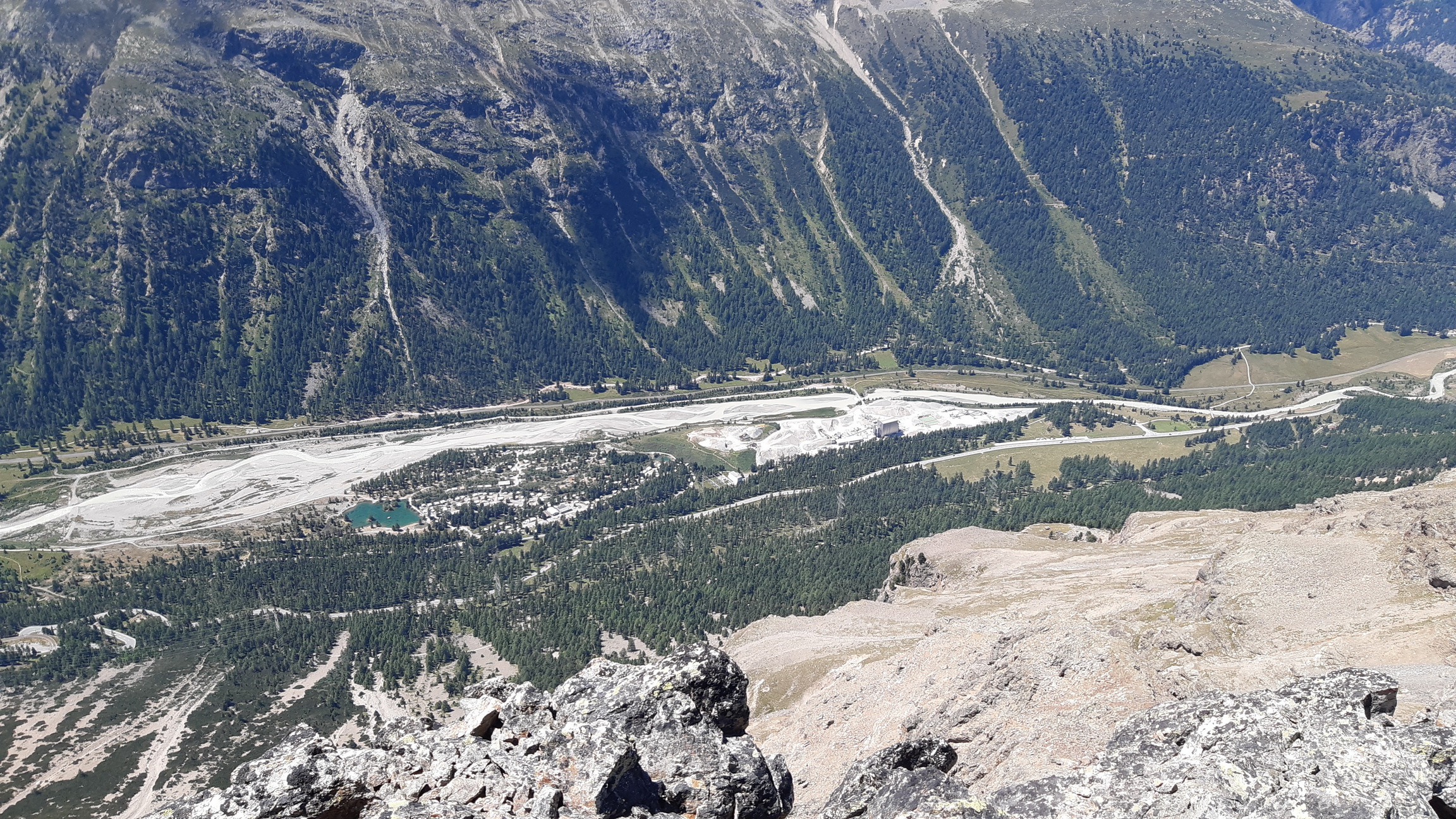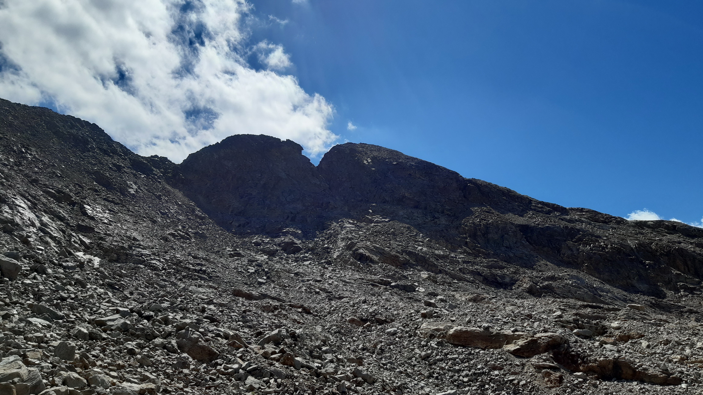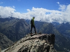 Najprv serpentínami smer Alp Languard, neskôr už hrebeňom smer Paradieshutte. Tu značka nevedie ďalej hrebeňom, vstupujem teda do môjho prirodzeného prostredia, opúšťam značkovaný chodník. Držím sa hrebeňa až prichádzam pod výraznú vežu, spomínanú cukrovú homoľu ako som ju pokrstil. Podarí sa mi nájsť kúsok lana na vých. hrebeni a pomerne ľahko (III.) sa dostanem na vrchol. Výhľady počas celej túry sú päťhviezdičkové, priznám sa že pri rozhodnutí sem ísť počasie hralo svoju úlohu. Kalkuloval som s možnosťou tých fotiek čo teraz môžete vidieť v článku.
