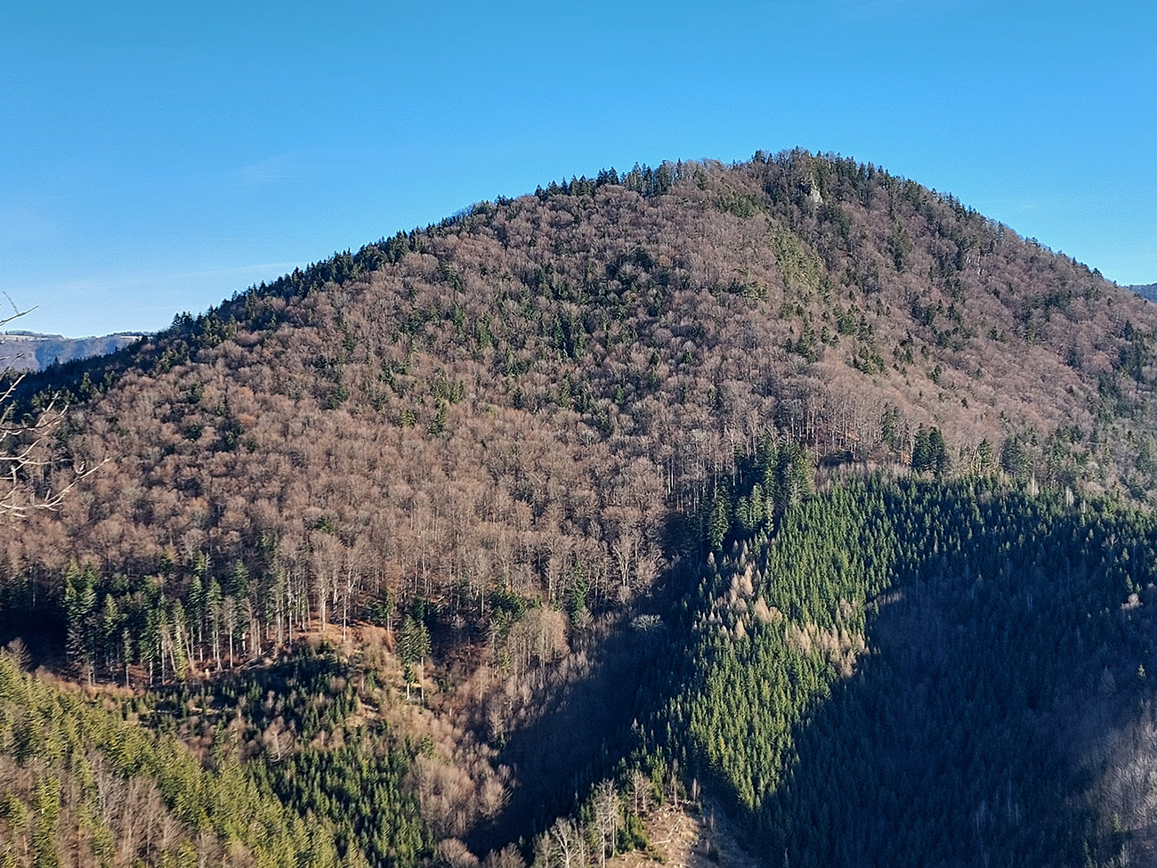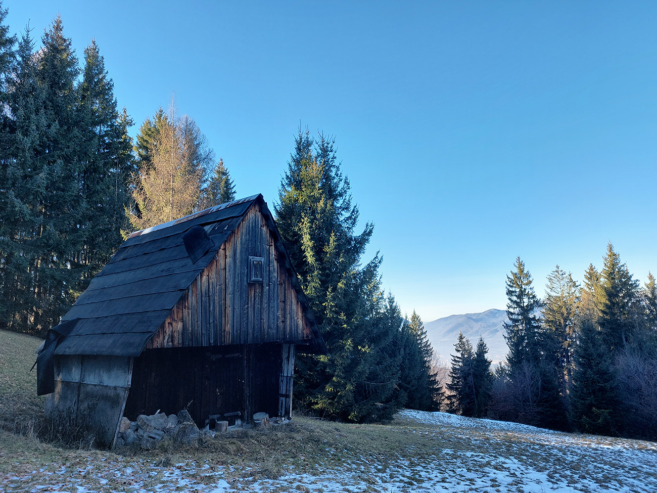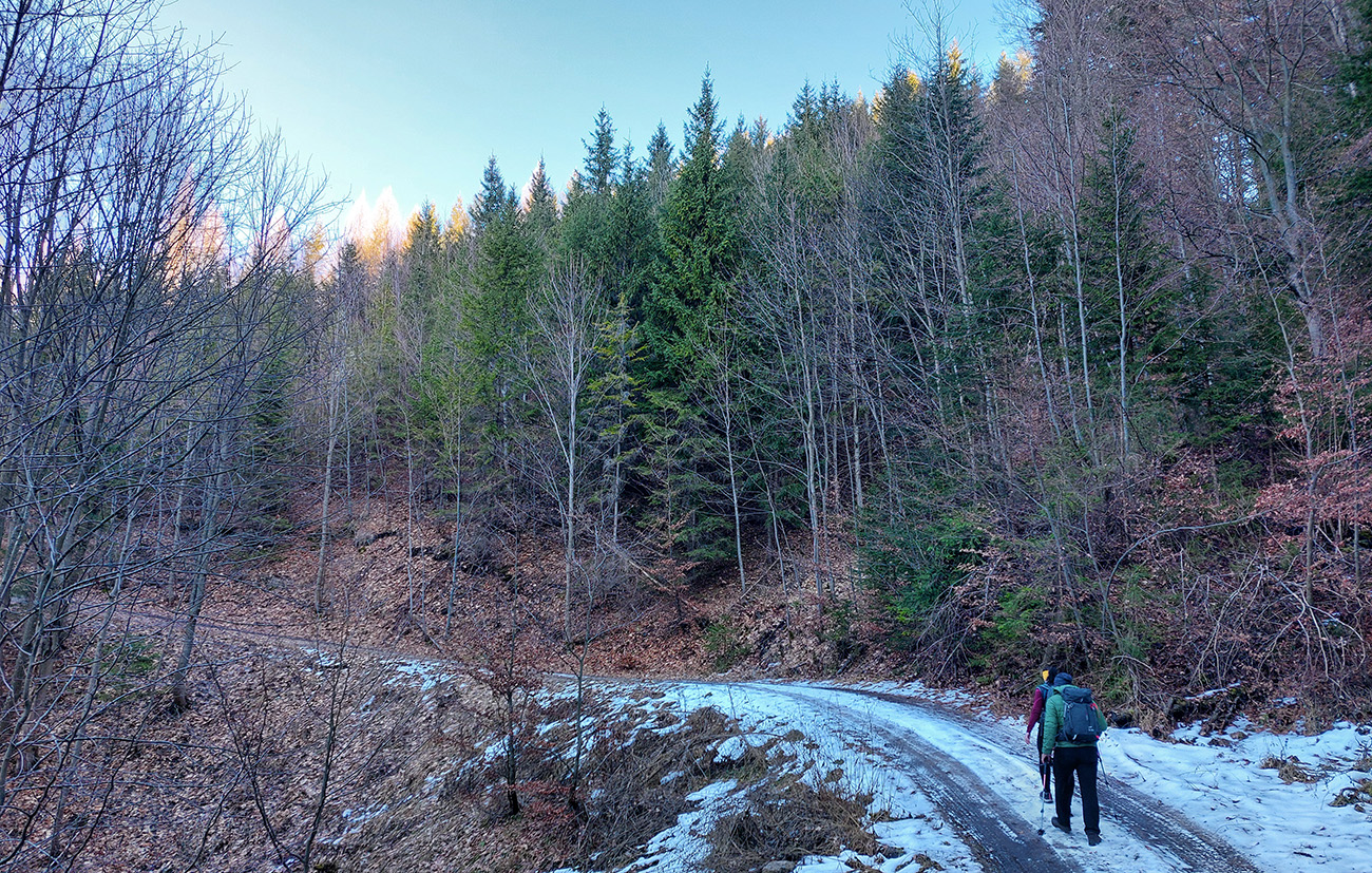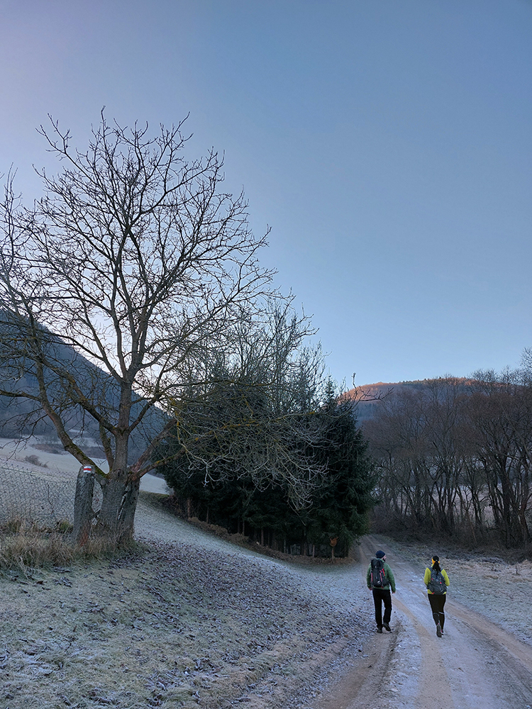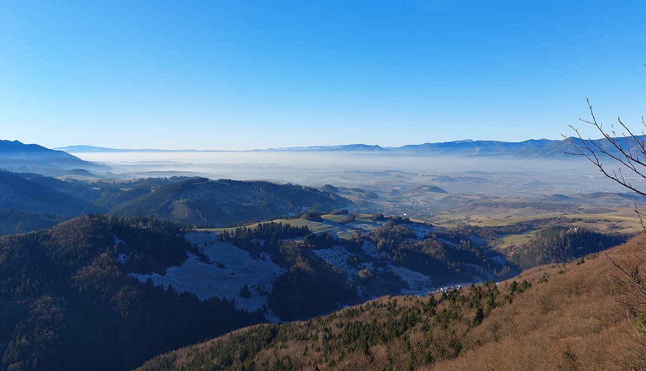 V dedine ešte pár výškových na Baštu – oplatilo sa, lebo okrem Fatry sa otvoril pohľadom aj na sever kotliny, jemne rozostrený riedkym inverzným závojom a nízkym popoludňajším slnkom. A za chrbtami nám spomedzi Vrchdielu a Smrekového vykúkala Prieložnica. Fajné kolečko to bolo, aj počasie! Síce stretnúť koncom decembra v lese na prechádzke medveďa a salamandru, to nie je veľmi s meteorologickým poriadkom, no čo už...