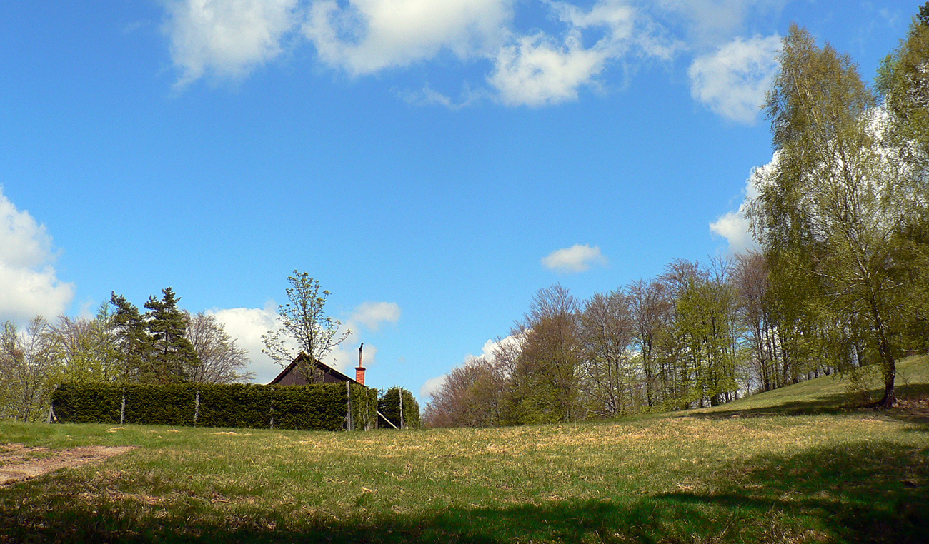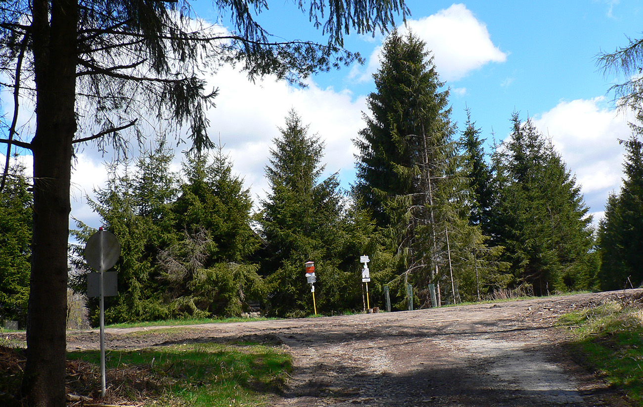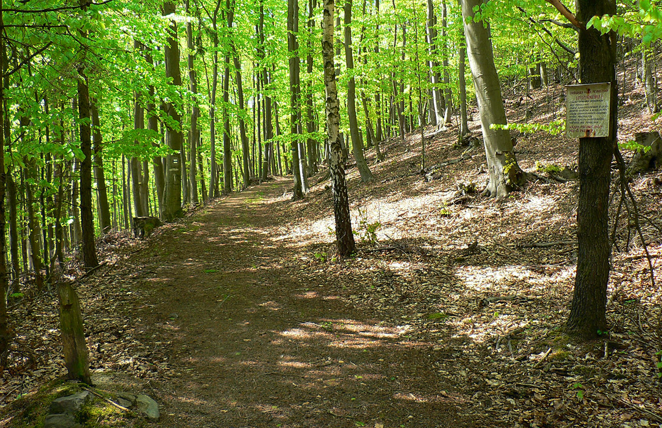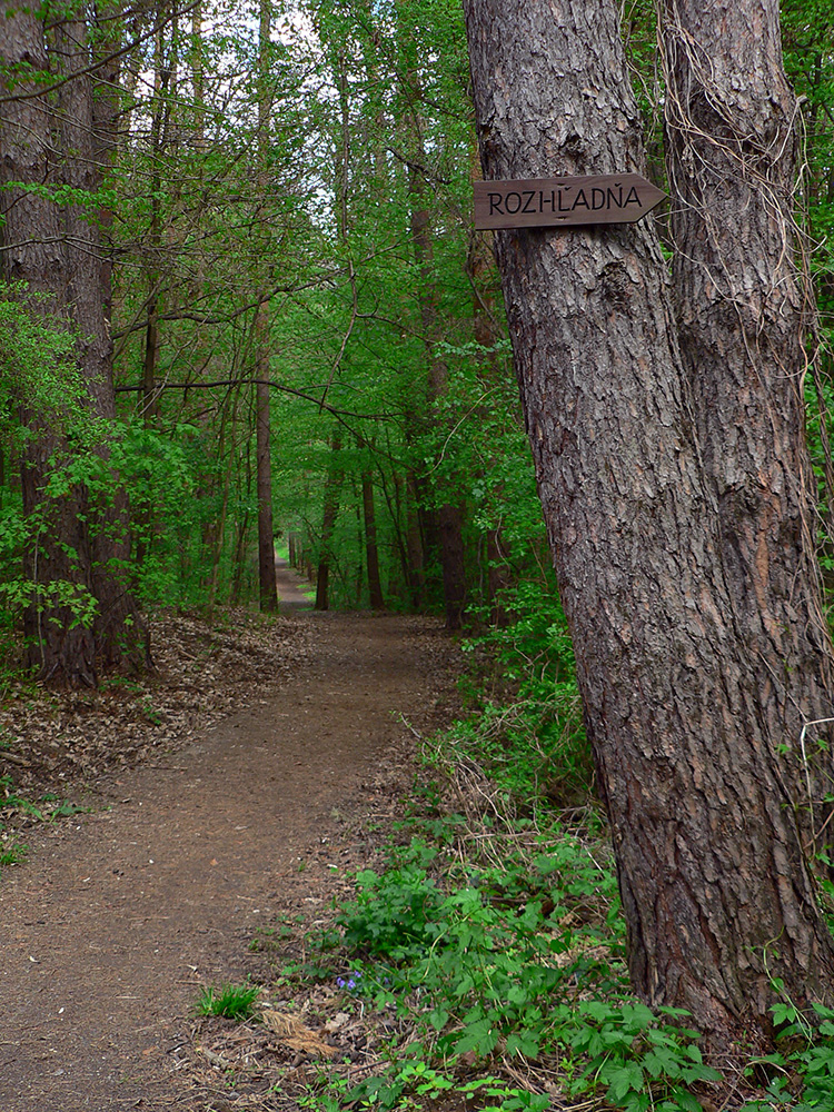 To už sme „Pod škôlkou“ a nasleduje ten doklus po tvrdej ceste. Okraje má našťastie mäkké, hlinené, tak fajn, a nad hlavou furt les. Ku koncu ju sprevádza singlík, škoda nevyužiť. To už sa začínajú objavovať „prvky civilizáce“ ako vtáčie kŕmidlá a kadejaké tabule, tak ešte krátka odbočka ku vyhliadkovej veži a o chvíľu už tá kofola syčí :-)