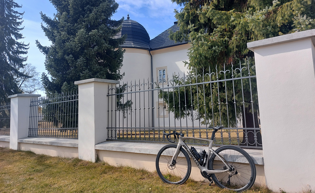Víkend, počas ktorého fičala prvá ultrabežecká stovka v sezóne u nás (Letecká) bol hriešne suchý a teplotne príjemný, nedalo sa odolať – vytiahnuť cesťák na dlhší výjazd :-) Keď už som sa na Leteckú v nutnom veľkom predstihu neprihlásil s nádejou, že budem ešte lyže drať. A nie, že by som Pino už predtým párkrát nevyvenčil, ale to len okolo domu, tak nadišiel čas aj inde sa pozrieť. A že mám ten týždenník na vlak, odviezol som sa do BB a odtiaľ už po vlastnej osi obzerať kopčeky okolo Hrona na západ od Zvolena. Takže tých prvých a posledných 20 km si netreba všímať, to dôležité je v sľučkách na mape v okolí Budče, Tŕnia, Železnej Breznice, Hronskej Dúbravy, Ostrej Lúky, Brezín, Bacúrova a Dubového. Krajina pekná, aj keď ešte predjarne sivá, ale výhľady cykloturisticky pozitívne a asfalty fajnové, tak som sa ani nedivil, že som tam nebol sám: