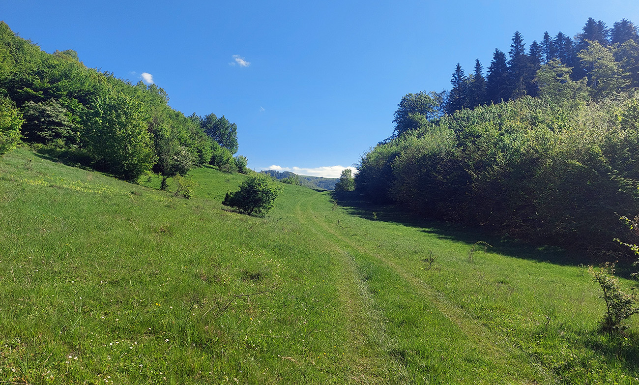 V podstate je to všetko komfortne jazditeľné, len nad Nemcami a potom nad Ponikami sa treba párkrát „kusnúť“ do krátkych strmáčikov. Inak pohodové lesné cesty, často striedané lúčnymi, suché sú veľmi rýchlo aj po väčšom daždi. Na dôvažok je to celé krajinársky veľmi pekné, bohaté na panoramatické výhľady. Máličko asfaltu, najviac asi z Ľupče do Driekyne, ale aj to ani nie dva kiláky. Nepočítam rýchly zjazd Selčianskou dolinou a rozbitú „družstevnú“ cestu pred Podkonicami (tam už je viac výtlkov ako asfaltu).