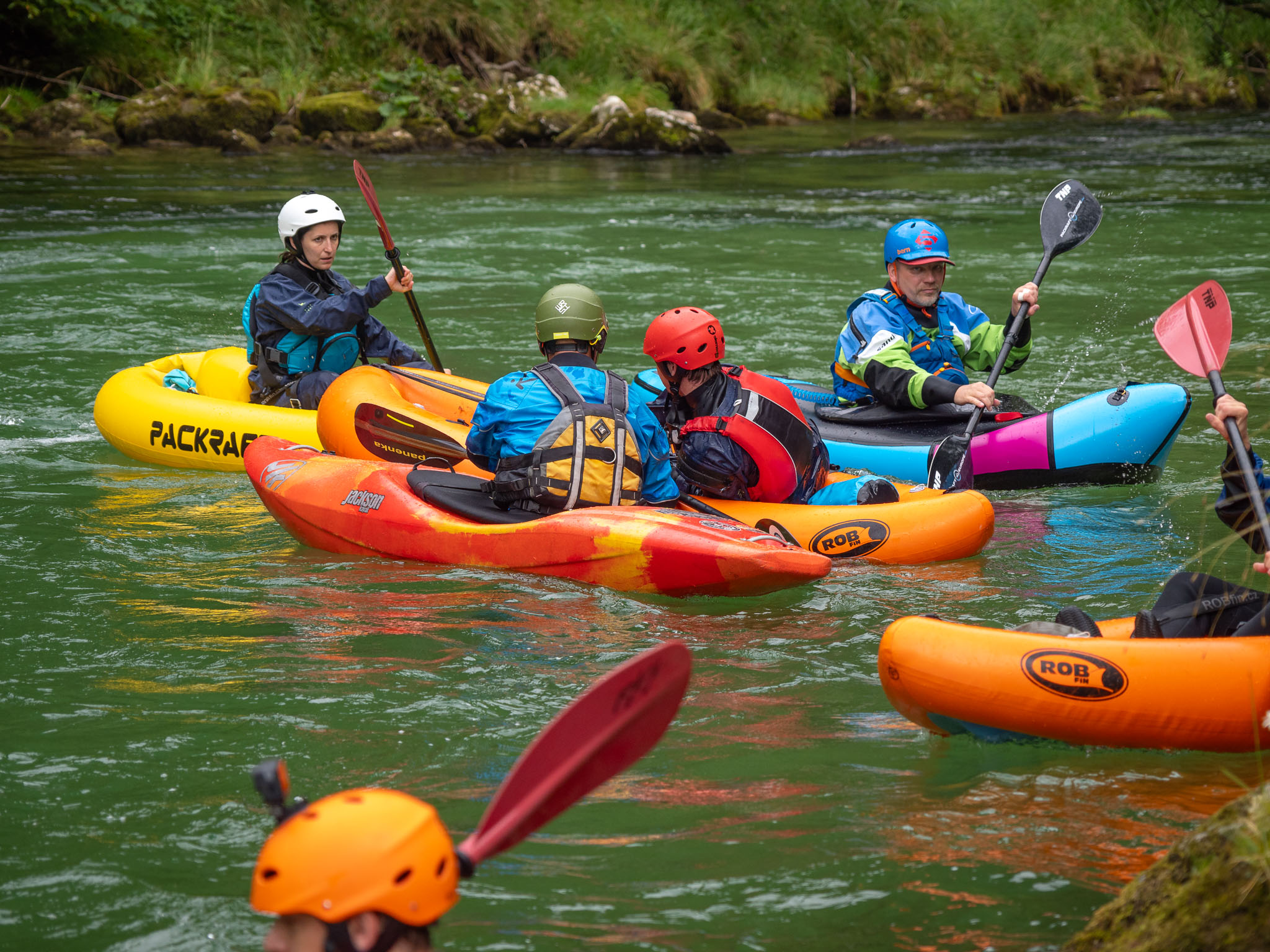 Pre začiatočníka, ktorý sa chce naučiť jazdiť na divokej vode, je najlepšou voľbou packraft. Packraft Robfin je obratné nafukovacie plavidlo, ktoré sa upevňuje len dvoma popruhmi, čo umožňuje jednoduché uvoľnenie v prípade prevrátenia. Ovláda sa oveľa ľahšie než kajak, keďže je širší a ľahší. Prvý a druhý úsek poskytuje vhodné podmienky na osvojenie si ovládania plavidla, precvičiť si základy pádlovania, náklonov a správneho otáčania.