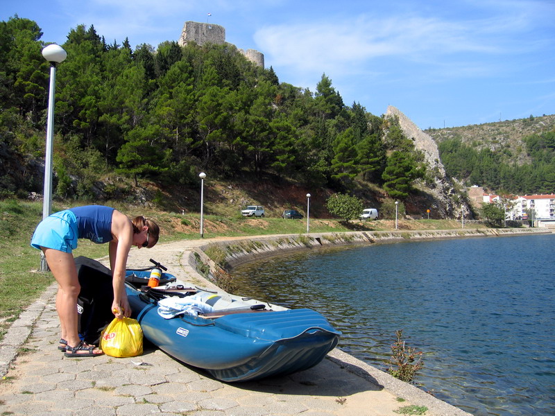 Do Chorvátska sme vyrazili až začiatkom októbra. More už nebolo najteplejšie a tak sme sa vybrali pokrstiť novú gumenú Pálavu na rieku Zrmanju. Ako východisko sme zvolili mestečko Obrovac, ležiace na oboch brehoch rieky. Tu sme sa pohodlne nalodili a vydali sa najprv proti prúdu. V týchto miestach tu už moc silný prúd nie je , je to vlastne akýsi morský záliv, aj voda je už premiešaná s morskou.