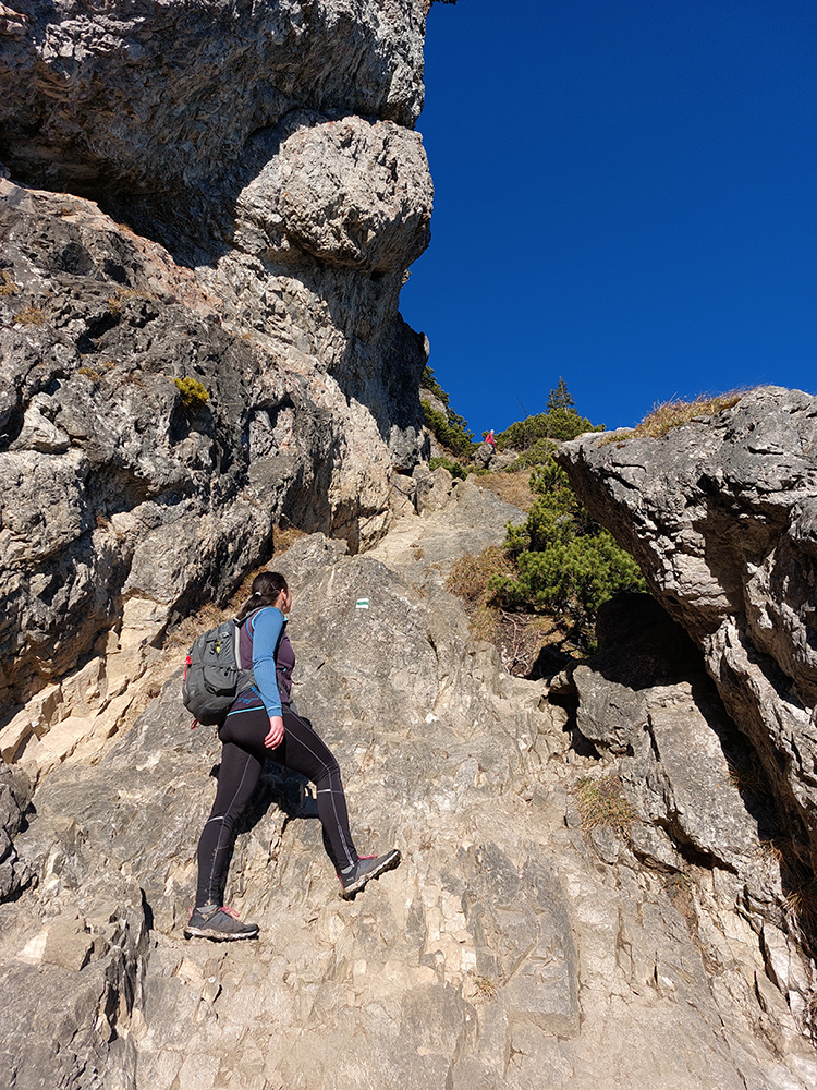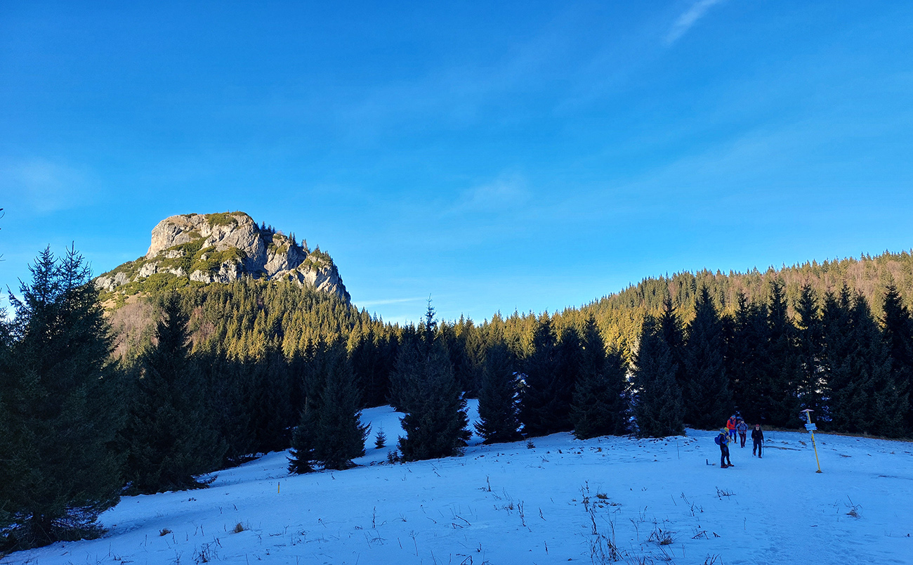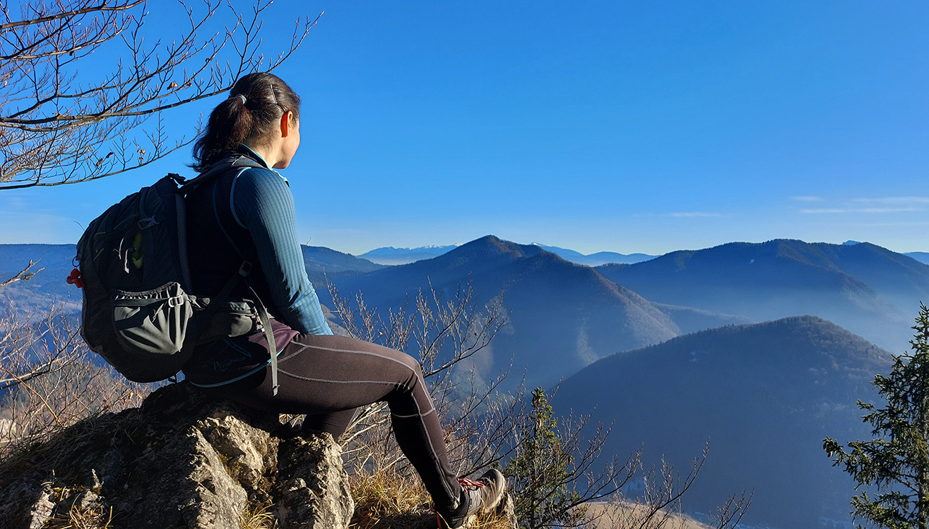 Strmina hore lesom pod Malý Rozsutec je spestrená početnými skalnými vežami a bralami – ale najmä niekoľkými vyhliadkovými plošinkami pre upokojenie pľúc a potechu očí. K Veľkému Rozsutcu sa stále odvážnejšie pridáva Stoh a na východe nesmelo vystrkuje svoj nos Choč. Svieti aj guľa meteoradaru na Kubínke: