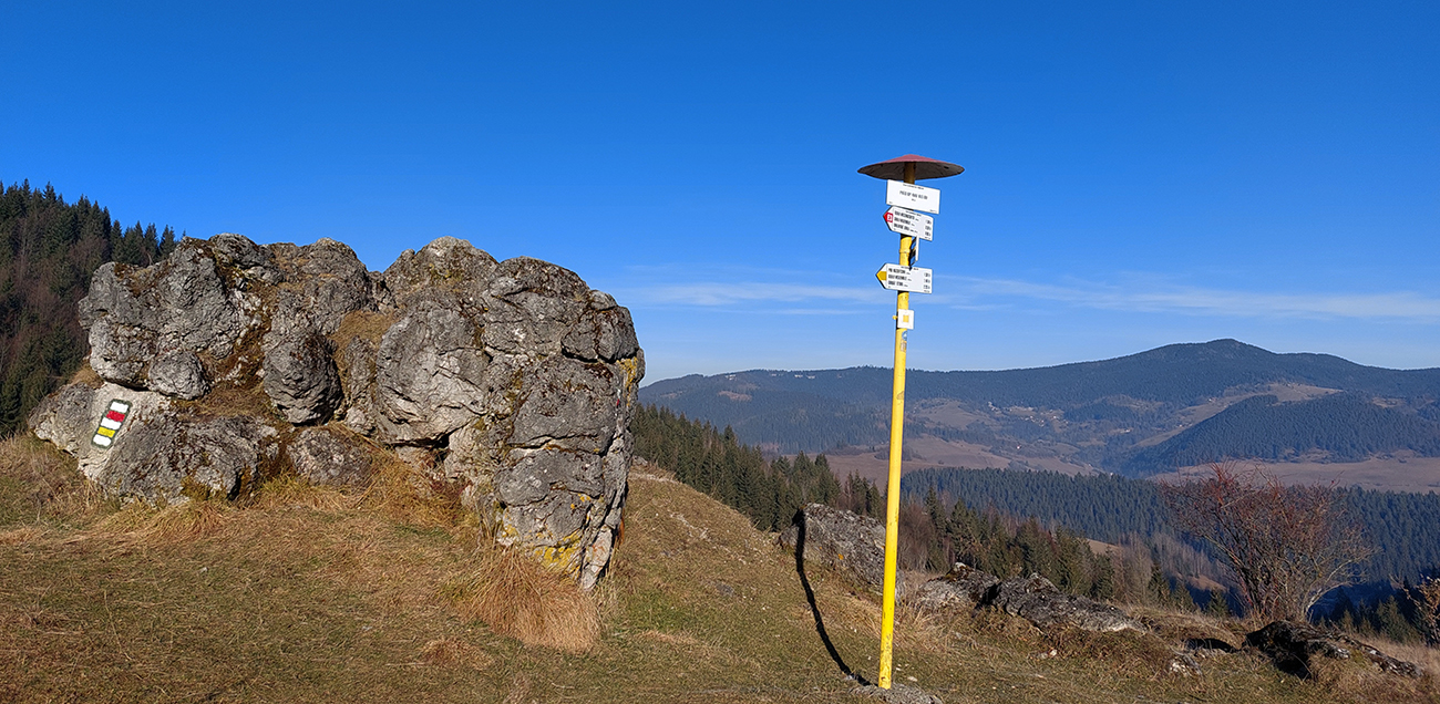 V sedle Príslop nad Bielou sranda končí, ako vieme. Ale sa otvára aj severný horizont s dominantami Oravskej Magury vpredu a prihraničných Beskýd vzadu, početnými rúbaniskami a linkou estakády oravsko-kysuckej cestnej spojky:
