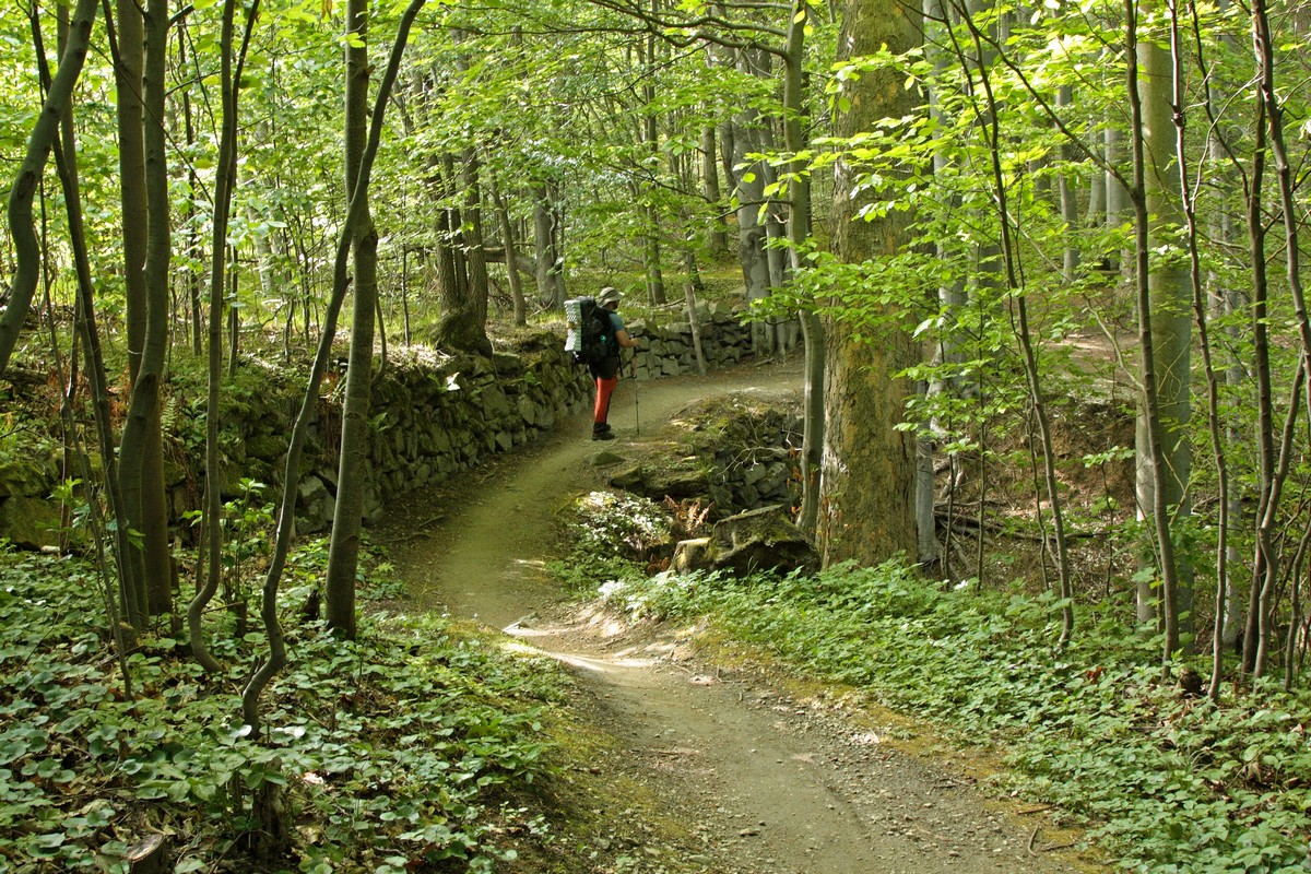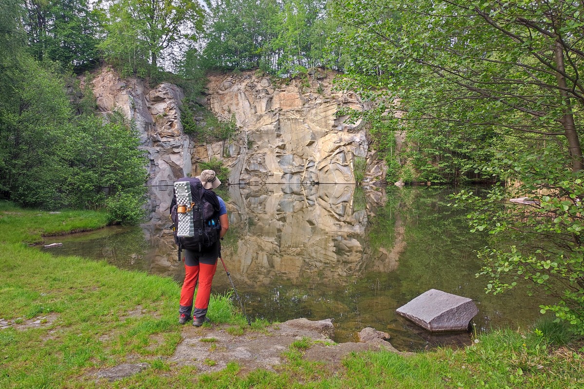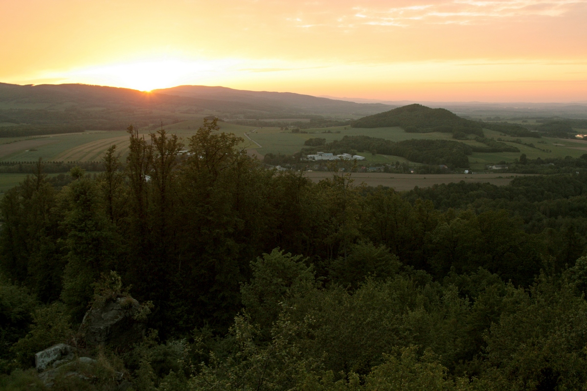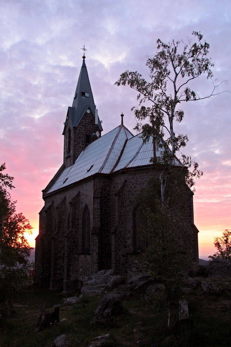 To sme však už takmer v Žulovej. Ospalé mestečko dostalo svoj terajší názov až po 2. svetovej vojne podľa priemyslu, ktorý tu prekvital. Dnes tu ešte nájdeme Kamenické muzeum (viac info TU ). Nás však viac ako múzeum zaujíma krčma, kde si pred posledným výšľapom dňa doprajeme vytúženého čapáka a tradičných utopencov. Pre nocľah na túto noc sme si vybrali Boží horu. Ide o dominantný vrchol nad Žulovou s kostolom Panny Márie Bolestnej, postaveným v novogotickom štýle. V posledných lúčoch zapadajúceho slnka sa prepletáme uličkami z mačacích hláv, popri zrúcanine hradu Frýdberk, ktorého zachovalá veža bola zakomponovaná pri výstavbe miestneho kostola. Neskôr chodník označený ako „Boží hora pro náročné“ stúpa prudko hore cez ovocné sady aj bukový les, popri niekoľkých zastaveniach kalvárie až na samotný vyhliadkový vrchol. Okrem kostola sa tu nachádza niekoľko altánkov a posedení (dokonca WC), ktoré nám poskytnú všetko potrebné pre túto noc. Ešte pár fotiek západu slnka, ešte pár dobrôt do brucha, ešte trocha nevyhnutnej hygieny a upadáme do zaslúženého spánku.