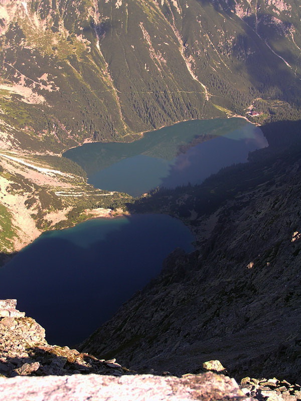 A tak zanechávame naše expedičné vozidlo na Štrbskom plese a vyrážame. Je 6:00, nikde nikoho, chodníky prázdne. Počasie je super, prvých turistov stretávame až na Popradskom plese. Kráčajúc Mengusovskou dolinou nám lietajú ponad hlavu vrtuľníky, voziace stavebný materiál na chatu pod Rysmi. Sem tam ma napadne, aká je šanca, že paleta Itongu padne na turistický chodník. Na Žabákoch si dávame cikpauzu. V diaľke vidno prvých ľudkov – traja lezci zlaňujú do sedielka a chystajú sa liezť na Žabieho koňa. Až sa mi slza tisne do oka, neliezla som už ani nepamätám. Pokračujeme nosičskou skratkou popri vodopáde. Vidno slnkom nasvieteného Satana, dolina sa pomaly vynára z tieňa.