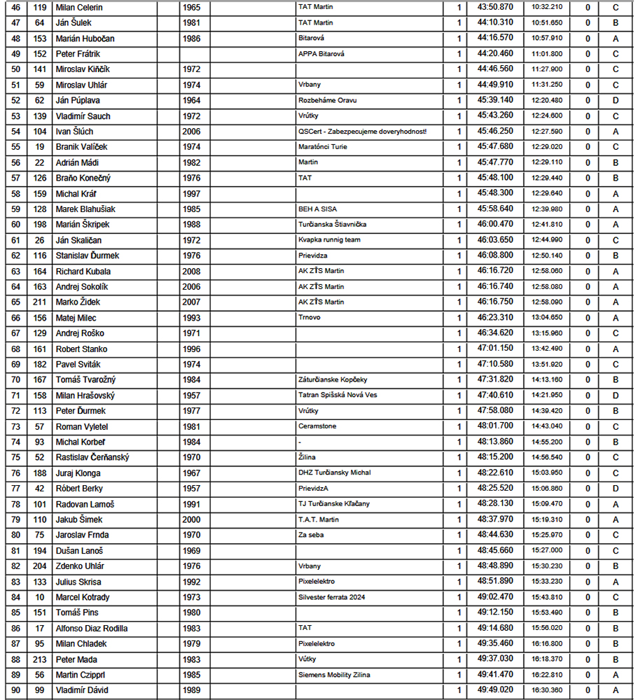 A že vďaka KK sport timing všetko fičalo ako malo a že ozaj sychravosť za nechty zaliezala, poponáhľali sa orgovia aj s vyhlásením výsledkov. Aspoň na ten čas začalo liezť aj slnko spoza rednúcej hmly, tak hádam všetci ostali spokojní, ako si dobre zapretekali na konci roka. Tak len nech sa im darí aj v celom novom roku, ktorý už zajtra začne. A nie len v športe a nie len im, ale všetkým slušným ľuďom. Držme si palce, nech sa takto o rok môžeme pochváliť, že zas o kúsok lepšie bolo!