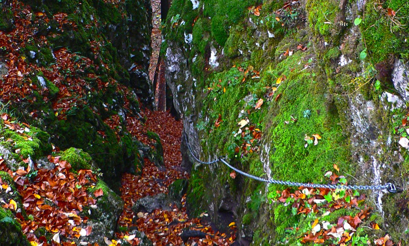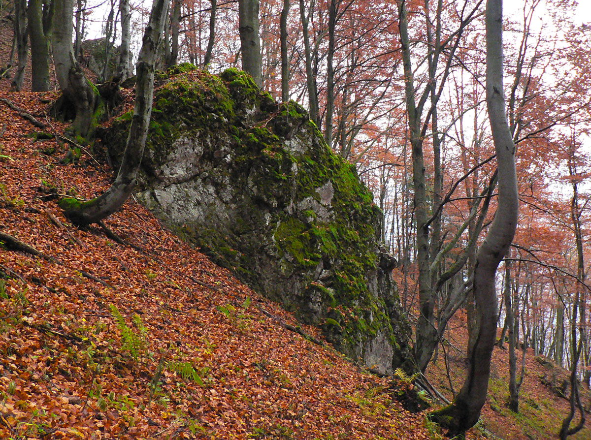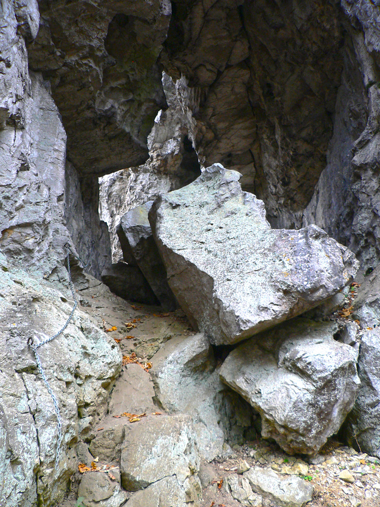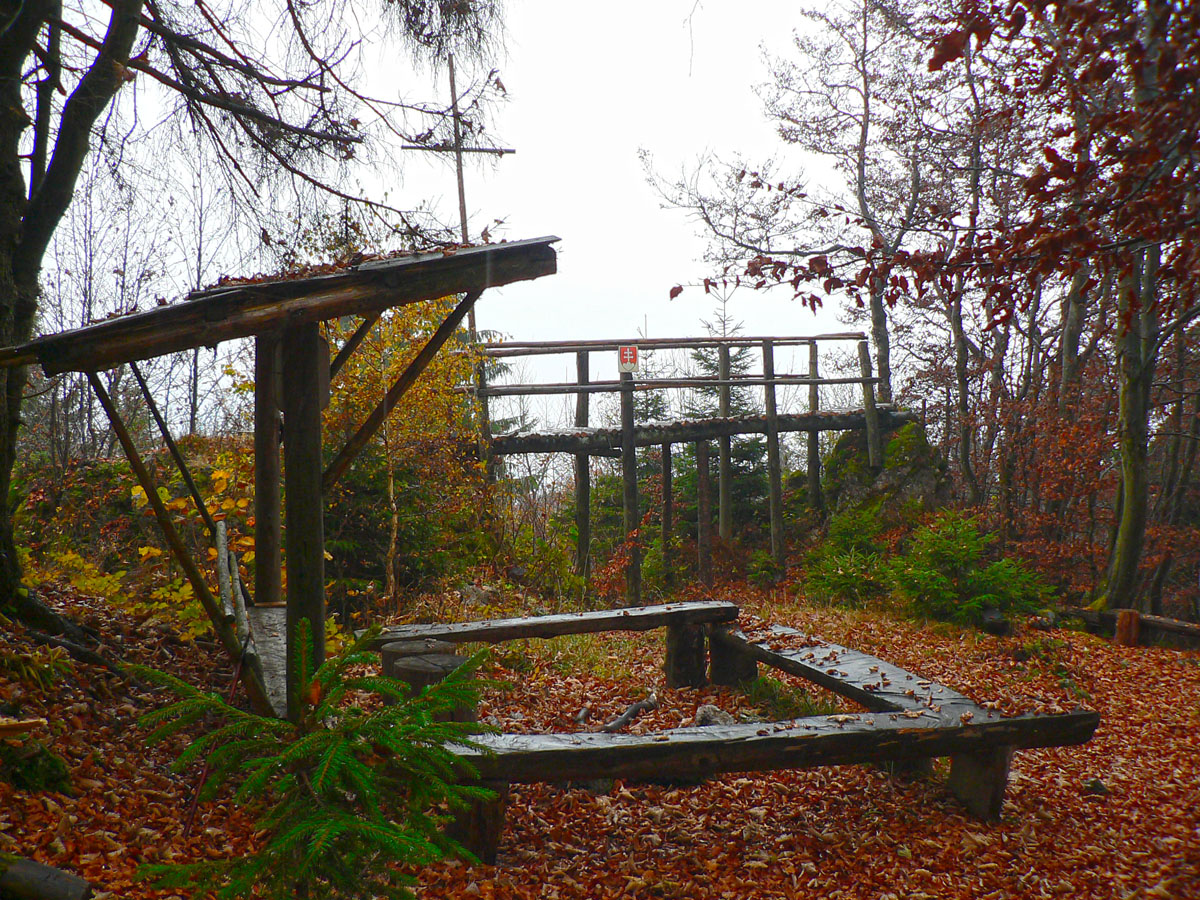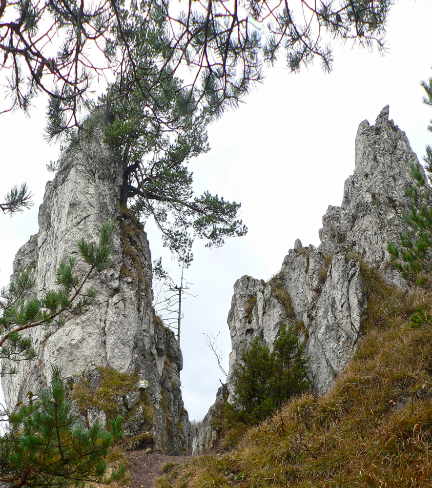 Je tu finálne stúpanie na Šíp, les ticho šumí, len z diaľky a hĺbky sem doliehajú zvuky civilizácie. Stále viac skaliek, brál, vežičiek okolo chodníka, hore známe skalné mesto s vyhliadkami a známym „testerom štíhlosti“ v skalnej štrbine, na konci drevený kríž. Aj počasie sa trochu vylepšuje, aj časovú rezervu už viem, že znovu mám.