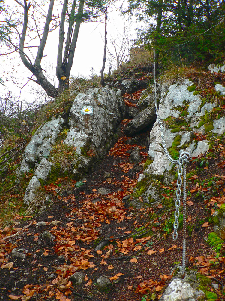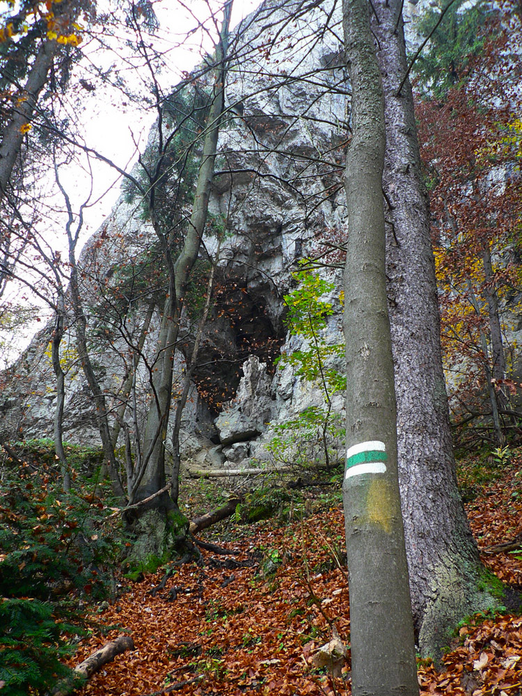Odteraz už je to jednoduché. Z Komjatnej po lúkach a následne čoraz strmšie lesom pod Hrdošnú skalu s jej skalným oknom, jaskyňami, reťazami a parádnym výhľadom z jej temena na východ ponad Komjatnú k Choču (len nie v tento deň, sakra...):