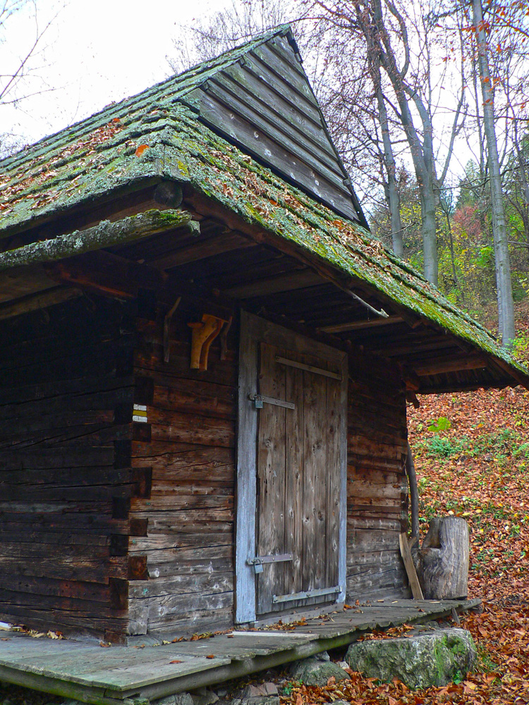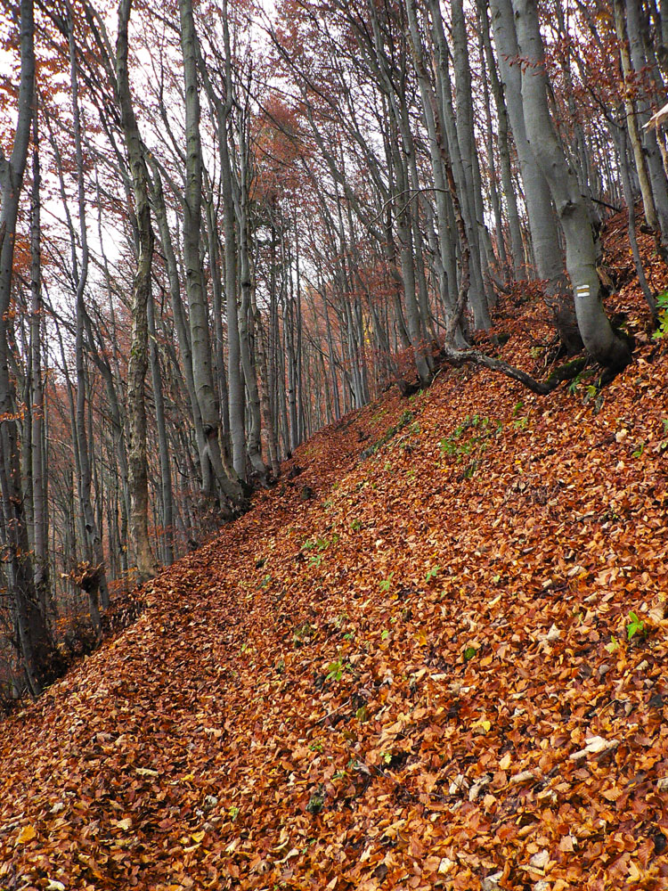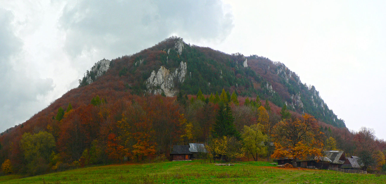 Napriek náskoku spúšťam sa rýchlejšie dole strminou k osade Podšíp, nech mám čas aj na pár fotiek a nech na zastávku dorazím s väčšou rezervou. Pre istotu. Šuchot medovohnedého bukového lístia pod nohami strieda lúka okolo dreveníc, Podšíp je nádherné miesto v každom počasí. Dreveničkári, vďaka že ho opatrujete!