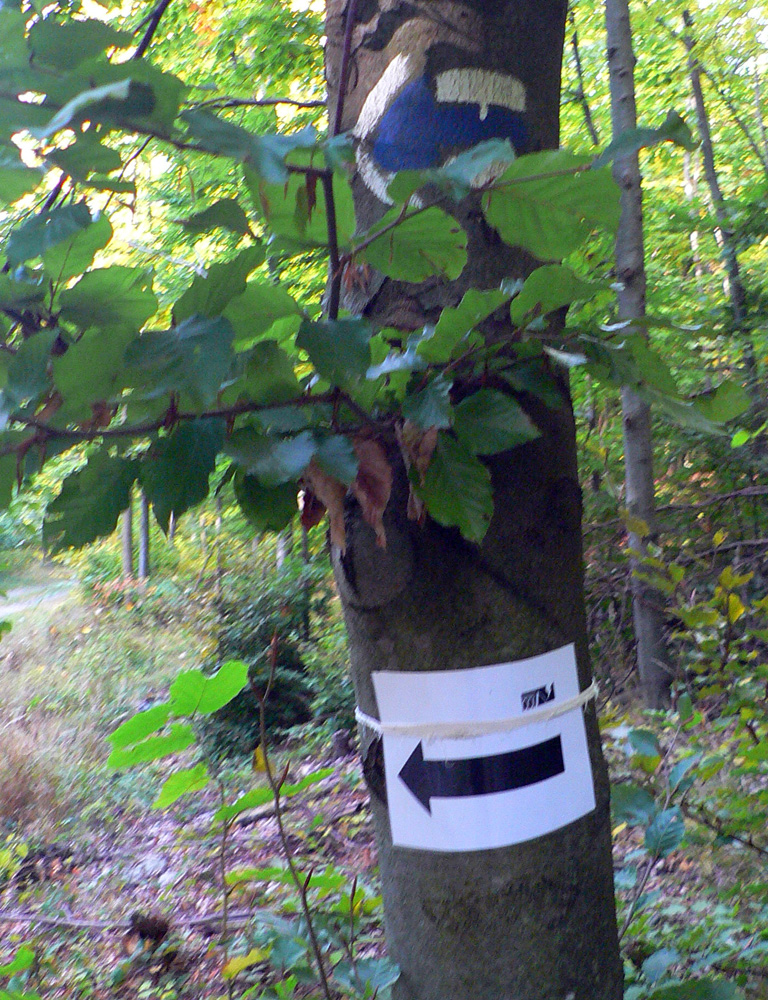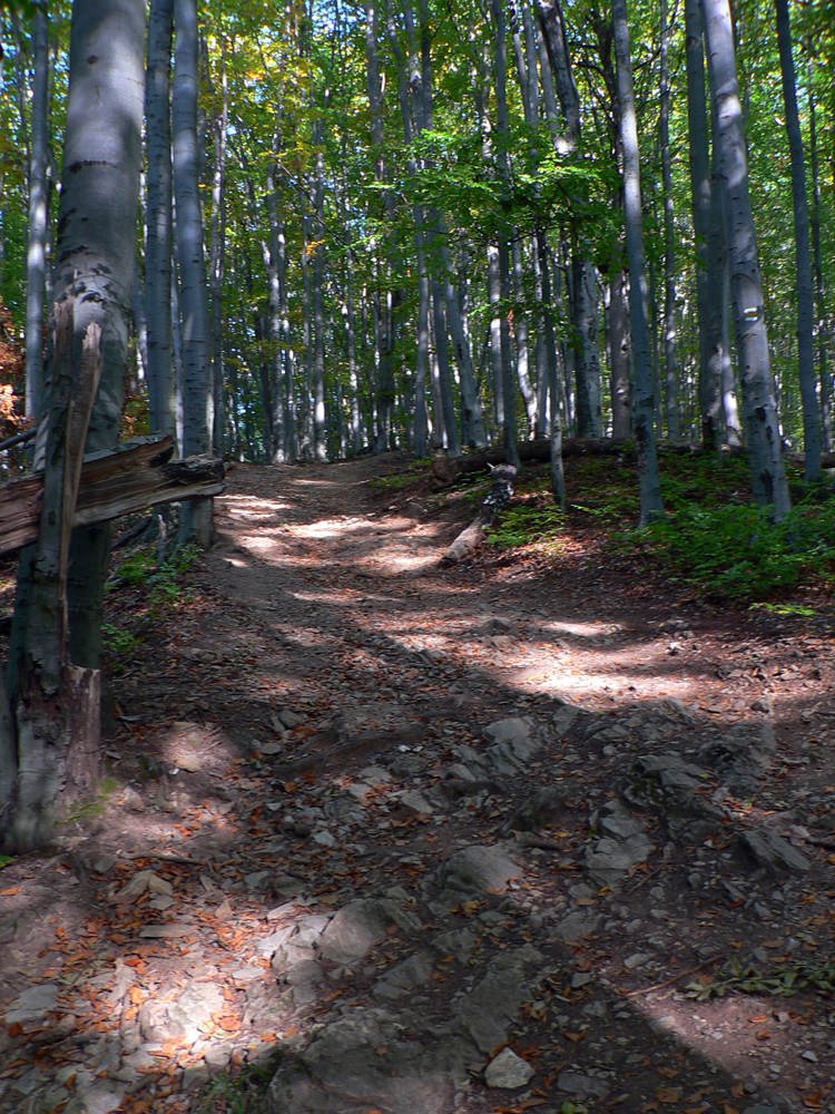 V Belej stojí bus priamo pri smerovníku, ale hneď o kúsok ďalej je odbočka doprava medzi domy (von z dediny) neoznačená. Značka až na pni za zákrutou. Potom už sa zle ísť nedá, lesno-lúčna cesta a modré značky spoľahlivo vedú plynulo do kopca, až na Gaľovú. Odtiaľ do Priehyby pod Sivcom veľmi pekný singlík lesom, až som sa divil, že sa tu v krajine zvážnic aj niečo také nájde. Len miestami žihľava hryzie do nôh a buková mladina vie za mokra asi dobre poumývať.