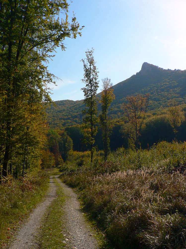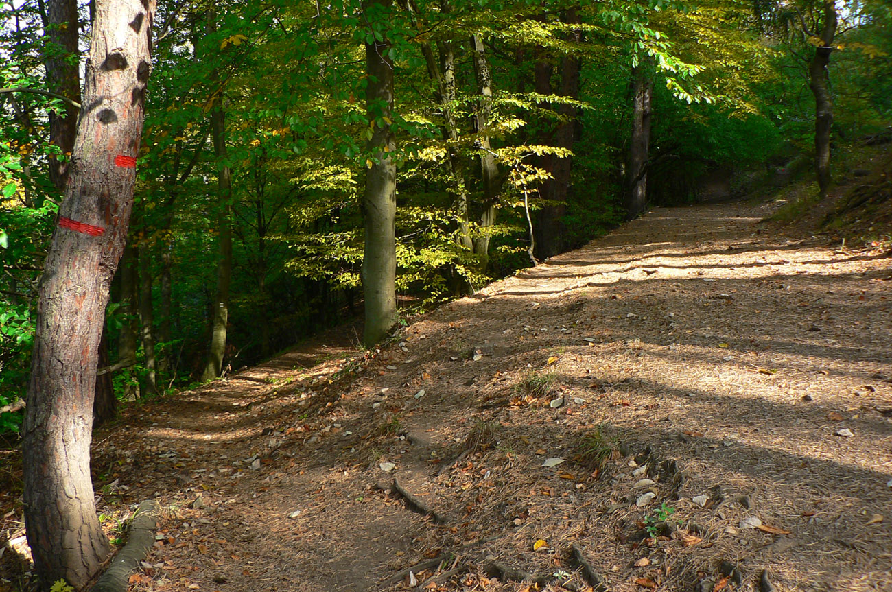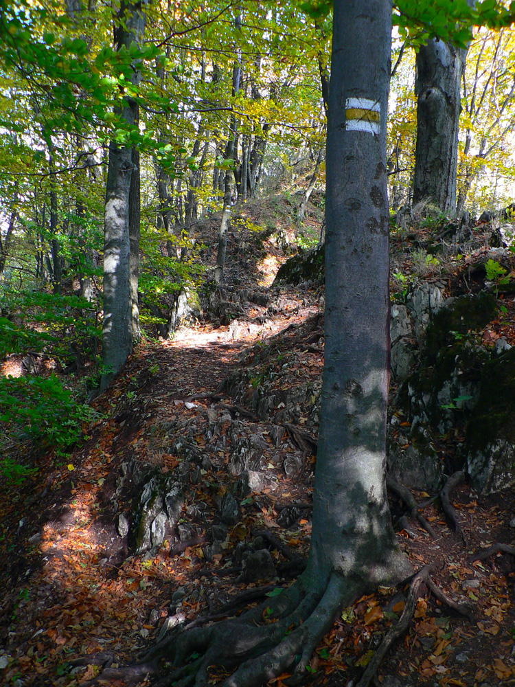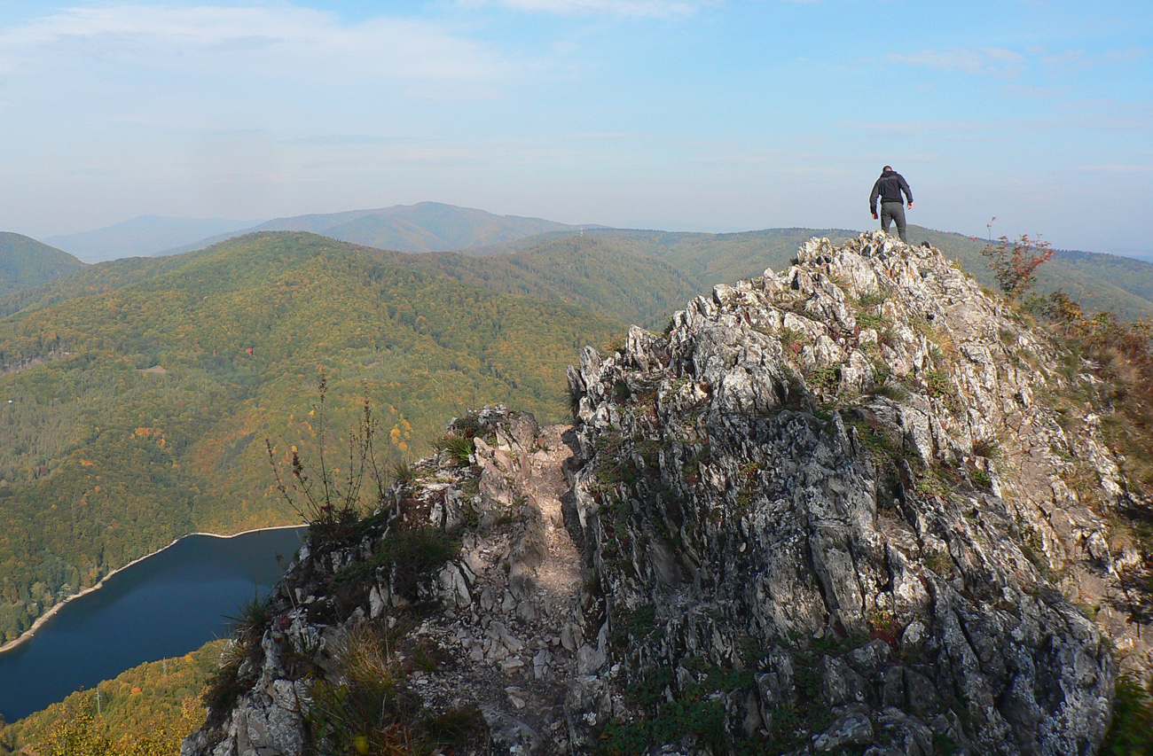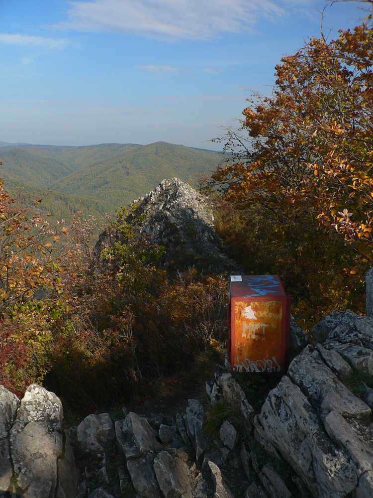 Od tabúľ v sedle je to už široko vyšliapaný chodník až na vrcholový bralnatý hrebienok, takých 20 minút. Rozhľady fantastikuš vo tri sveta strany, len za chrbtom zavadzia les. A zostup tiež jednoduchý. Len netreba zabudnúť hneď pod sedlom odbočiť zo širokej zvážnice doprava na chodník. Označený je. Tam začína strmý zostup až k asfaltke, miestami aj voda tečie po chodníku, ale zväčša komfort a v lete aj podstatný hlboký tieň pod stromami.