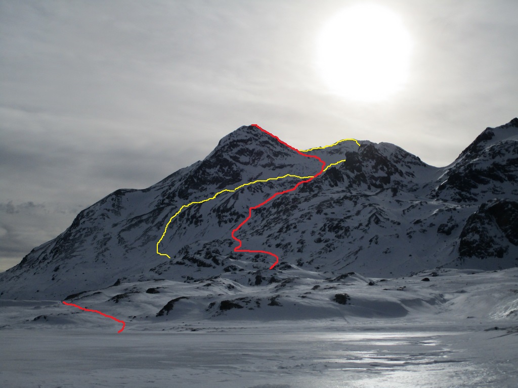 Začiatkom zimy ale aj v obdobiach nedostatku snehu je túra týmto smerom jedným z istých tipov. Vyráža sa z parkoviska (2230m.) pod passom Bernina v smere od Pontresiny. Parkovisko je napravo od cesty. Hneď vedľa premáva známy Unesco vláčik a kúsok dole je berninské lago Bianco. V čase tejto túry boli na jazere desiatky korčuliarov, ktorí využívali tvrdý a hladký prírodný ľad.