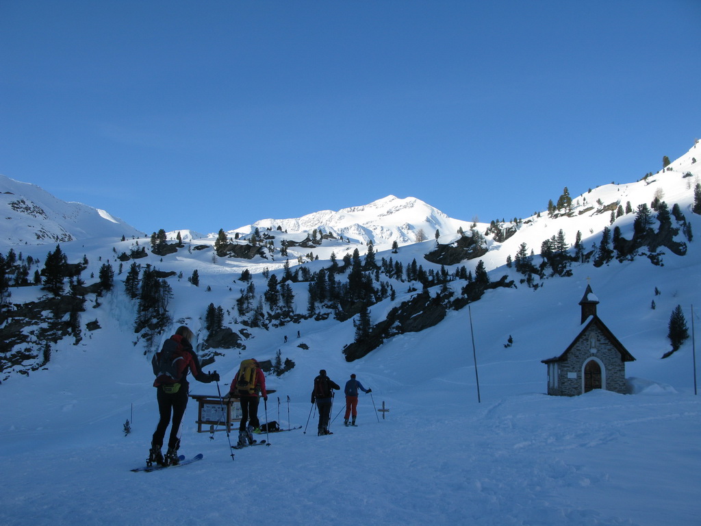 Na túto túru sme vyrazili ráno z Zufallhütte 2256m.(28.03.2014) Najprv sme s ťažšími batohmi vyšlapali na Martellerhütte 2610m., kde sme si dohodli ubytovanie, prebalili batohy a pokračovali ďalej. Skupina Veneziaspitzen je obľúbeným skialpovým cieľom v Martelltali ale treba priznať, že väčšina ľudí odtiaľto chodí na Cevedale a Zufallspitze. My sme počas tohtoročnej návštevy stihli oba ciele. V oblasti Venezispitzen sme túrovali dva dni plus tretí deň sme spravili túru na Cevedale.