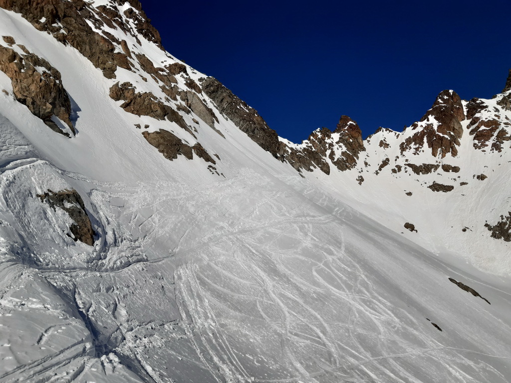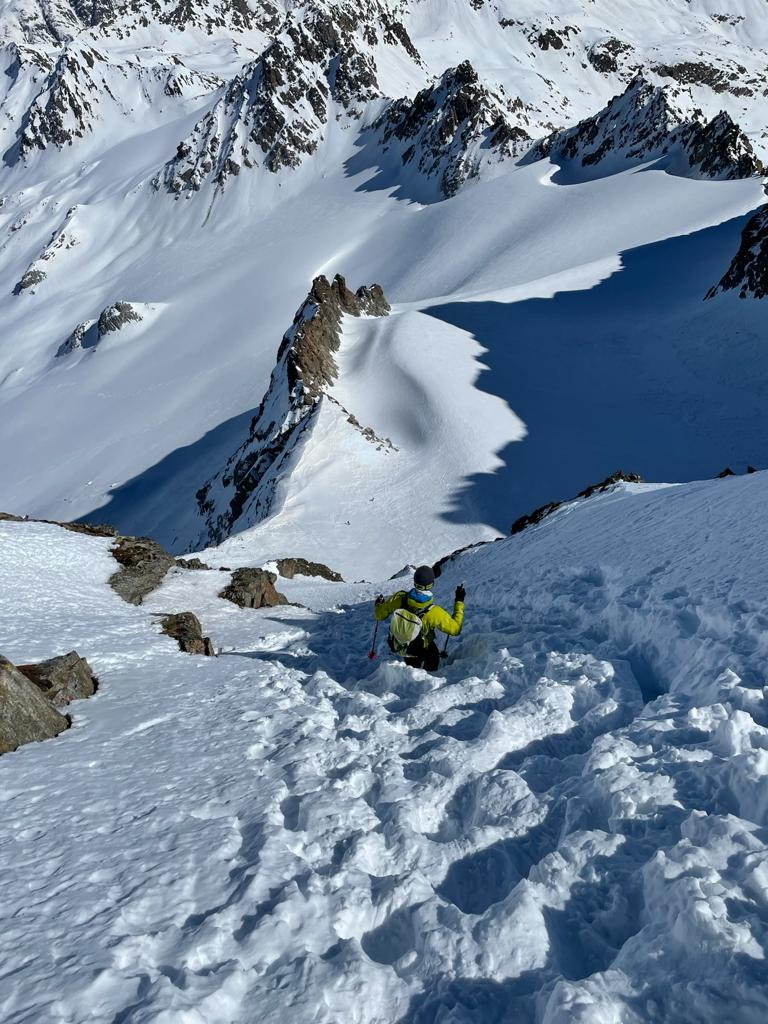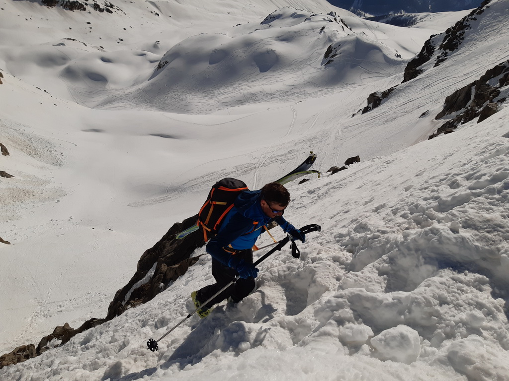 Nasleduje návrat tou istou trasou, podarí sa nám dokonca objaviť žľab, ktorým zlyžujeme aj z hrebeňa povyše Porta d´Escha. Sneh pri zjazde už je "všeho druhu", nesnežilo už dlho ale nevadí, táto túra nebola veruže len o lyžovačke...