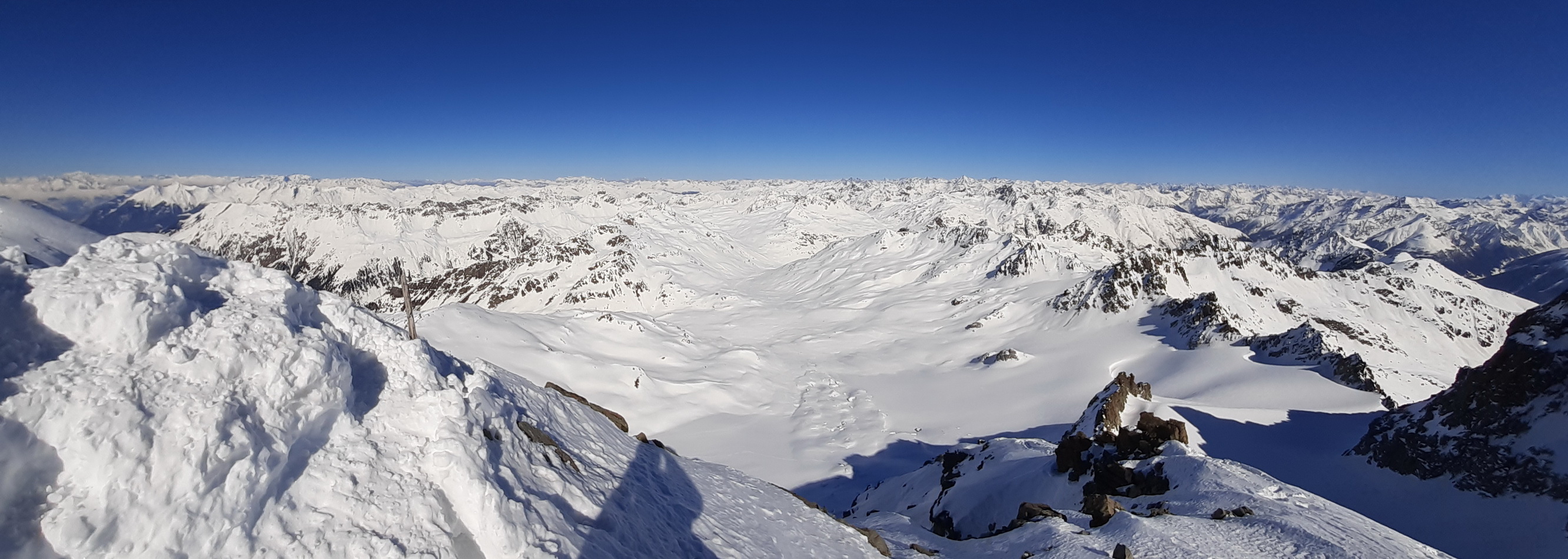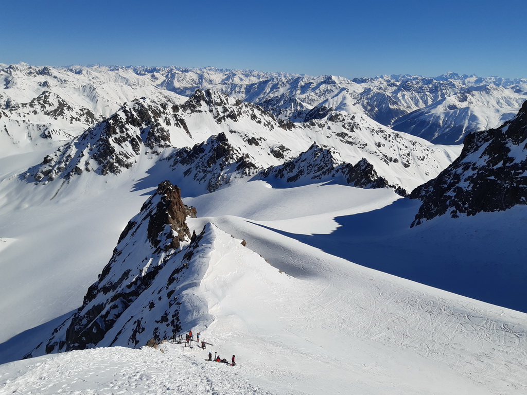 Hore na nás čakajú zaslúžené výhľady... A dvojka ktorá sem dnes prišla až takmer z Davosu (Sertig Dorfli). Aspoň sa navzájom pofotíme :) Na vrchole fúka ako to už býva, a tak pauzujeme až pod ním... Výhľady ostali zachytené na fotkách.