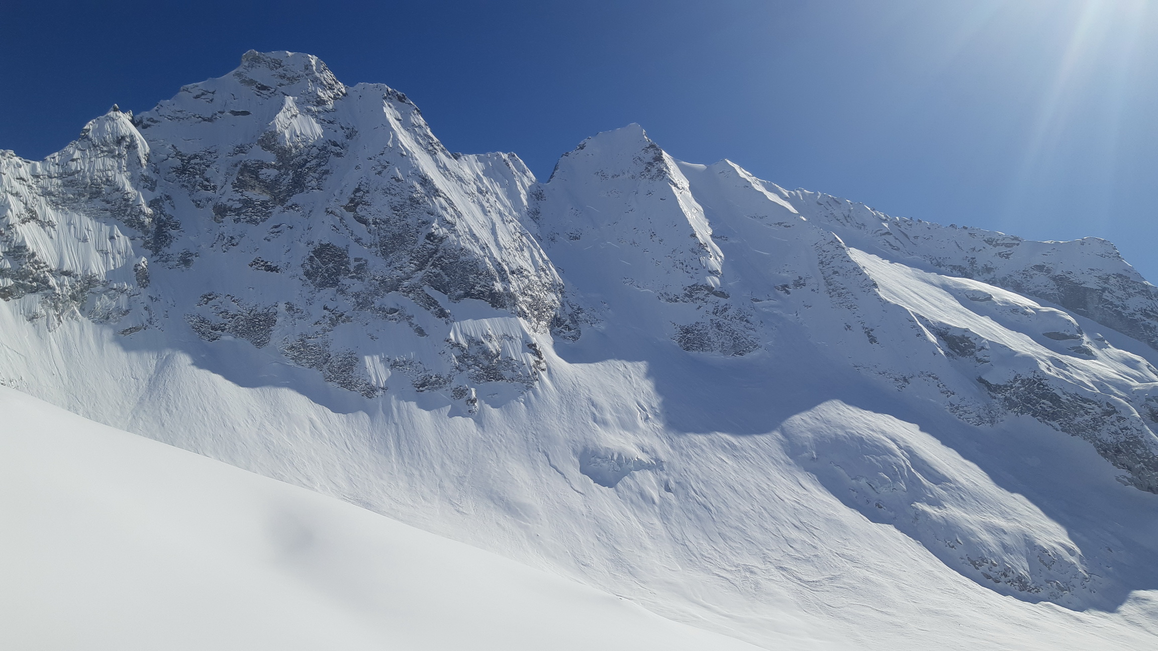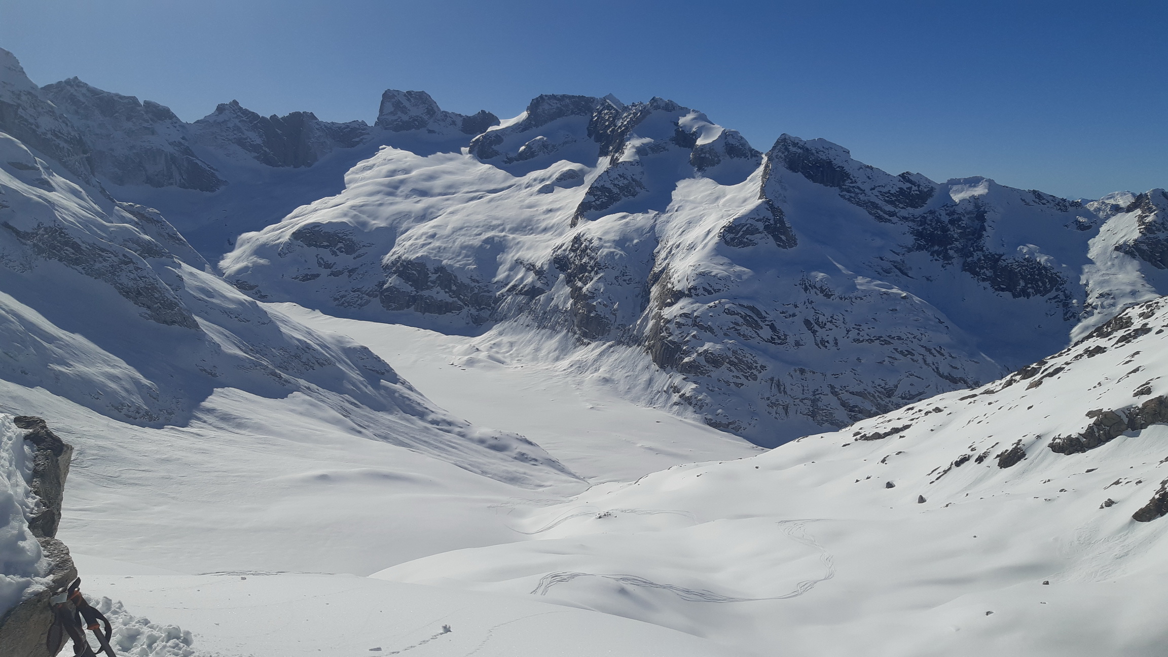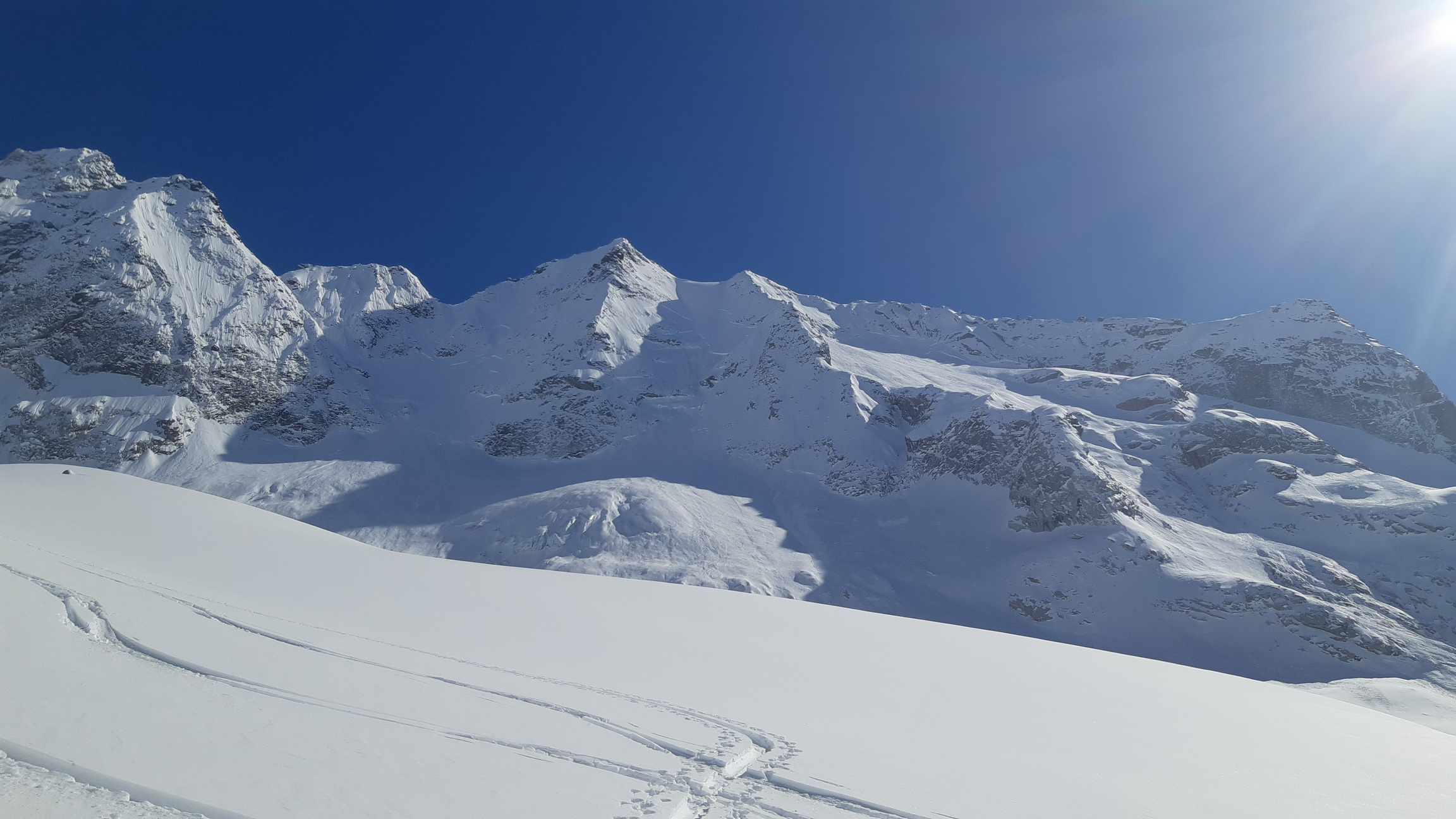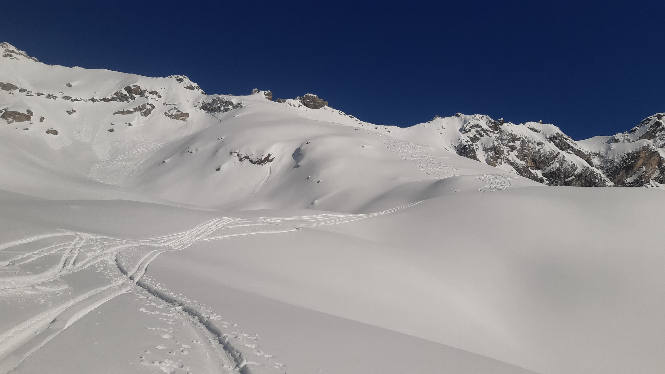 Vedel som, že v doline zasypanej nedávno snehom aktuálne nie je moc stôp a tak môj cieľ bol jasný, zopakovať výlet nemeckej skupiny ktorá ráno vyrazila na výpad do neďalekej bočnej dolinky na defenzívnu túričku. Ešte neboli naspäť a tak som ani nevedel, že kde to vlastne došli.