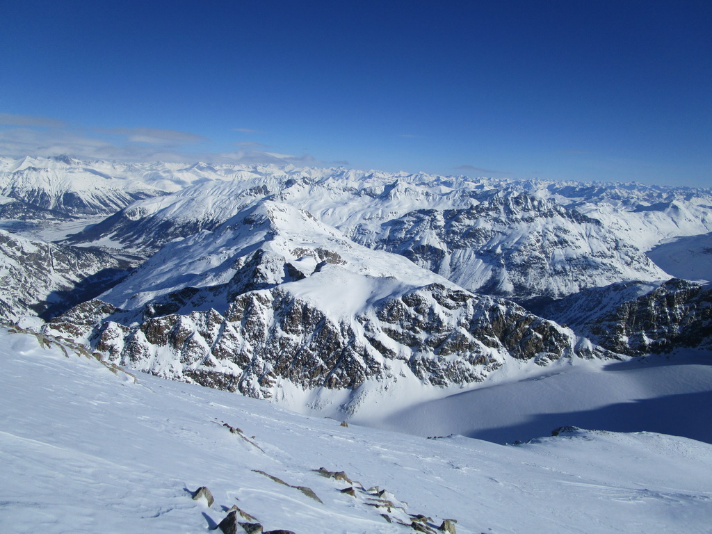 Po dvoch veľmi slabých zimách je konečne od začiatku tejto zimy slušný základ a dajú sa podnikať kvalitné túry v celom Engadine. Trochu škoda toho silného vetra, ktorý v oblasti vrcholov a hrebeňov odfúkol veľkú časť snehu preč...