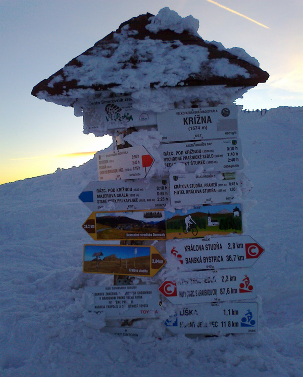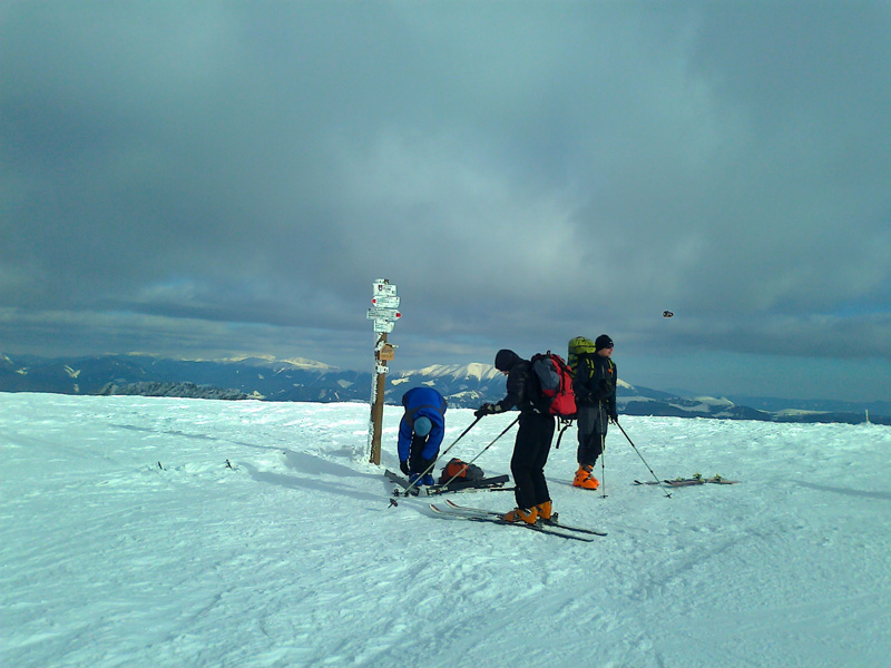 Po dlhšom uvažovaní nad rôznymi lyžiarskymi alternatívami na víkend sme sa nakoniec ocitli na veľkofatranskom hrebeni, čo sa v konečnom dôsledku ukázalo ako veľmi dobrá voľba. Vyrážali sme okolo 9:00 z Tureckej. Pred krčmou U Maka už bolo celkom slušné skialpinistické parkovisko, a tak sme ako výstupovú trasu na Krížnu zvolili Javorie, kde sme nestretli ani nohu – teda ani lyžu :-) Trasa bola vo veľmi dobrom stave, sneh bol tvrdý, ale aj v traverzoch to fajn držalo. Je tam ešte stopa od pretekov spred týždňa. Počasie bolo kadejaké a nad Líškou nás samozrejme poriadne vyfúkalo – veď to by predsa Krížna Krížnou bez vetra nebola.