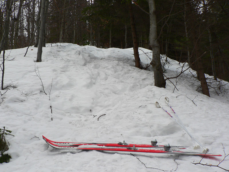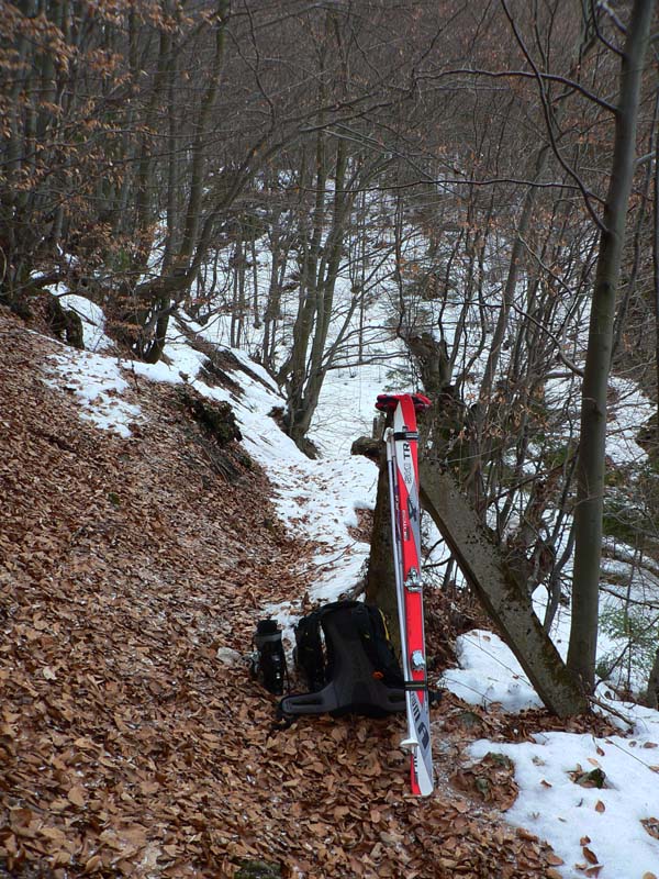 Až pod Vyšnú Lipovú sa dalo z Kľaku zjazdiť. Čo bolo do kopca, stačilo trochu pokorčuľovať. Potom zas trochu prepletania a od smerovníka Široké až na Jarabinú pohodlné stúpanie širokým výsekom (v lete zvážnica). Druhá lyžovačka z Jarabinej bola krátka, ale po rúbanisku aj pár plynulých oblúkov sa zadarilo :-) Nasledoval traverz do Sedla pod Kopou (aj v lete nepríjemný) a odtiaľ až na Malý Lysec asi najhorší úsek. Lyže putovali na batoh zo tri razy a od konárikov som bol prefackaný do ružova :-)