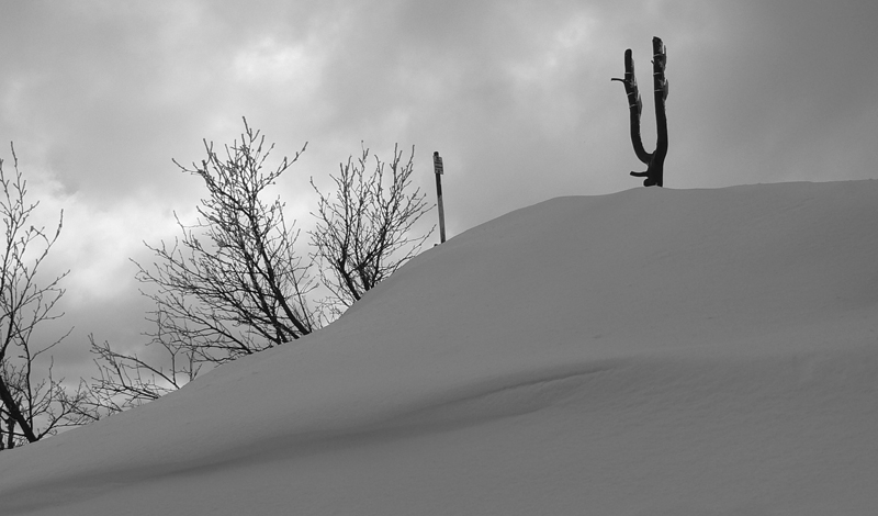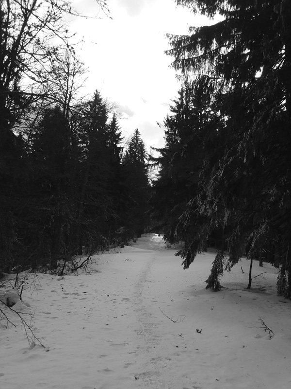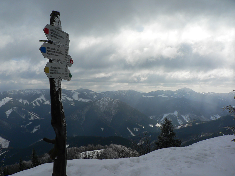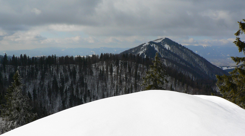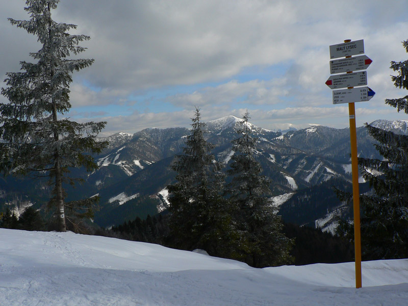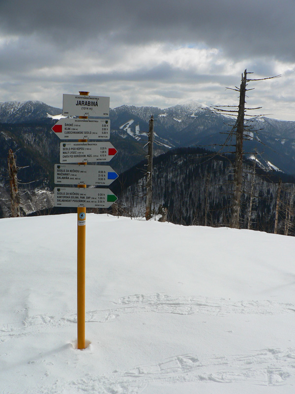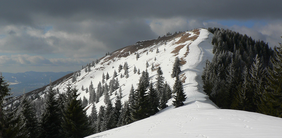Ako nazvať "severozápadný" hrebeň Veľkej Fatry? Jednoducho ten úsek, ktorý od Borišova na sever vedie cez Malý Lysec, Jarabinú a Kľak a končí na Kope nad Kraľovanmi. Kvôli minimálnym výhľadom a zarastenému chodníku nie je ani v lete veľmi obľúbený. V zime sú ďalšou komplikáciou pre šliapačov krátke a strmé svahy. Takže najlepšie je to asi na snežniciach (veď aj stôp po nich bolo hojne). Na pásoch sa dosť ťažko kľučkuje smerom hore ak je strmo, smerom dole ešte horšie. Ale skúsiť treba, tak som skúsil, keď vo vyšších kopcoch otravovali mraky a severák. Tu bol príjemný, do chrbta, lebo som to šiel opačne (ale len po Malý Lysec).