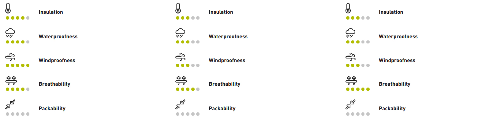 RACE klamú telom (alebo skôr názvom), lebo na pohľad aj na dotyk sú oproti zvyšným trom modelom trošku väčšie, aj keď oproti Marmoladam a Finale len také dvojtretinové. V galérii je to vidieť. Zaujímavé sú ale ich charakteristiky, lebo izolujú vraj dokonca lepšie ako Marmolady. Práve preto som si vybral tieto – podstatné boli pre mňa práve kategórie insulation a windproofness. Super doplnkom k nim na zjazdy alebo do chladnejšieho počasia, najmä do silného vetra, je nepriepustný palčiakový návlek LAVAREDO RAIN MITT, ktorý zbalený nezaberá takmer žiadne miesto. Len ho treba o číslo až dve väčší ako rukavice: