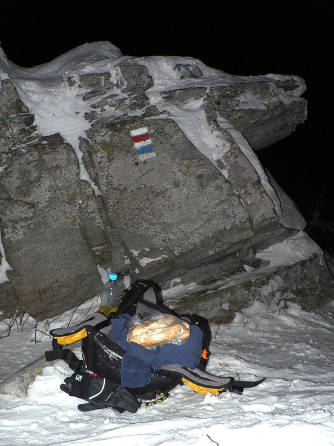 Ždiarske sedlo 2:30 Odtiaľto je to celkom iná lyžovačka – posúvanie v presne narysovanej hlbokej stope širokým lesným priesekom, v tichu, bez vetra. Sneh iskrí ako posypaný diamantmi, nad hlavou iskria hviezdy, krása. Len sem – tam sa pozriem okolo, kedy miniem útulňu na Andrejcovej, zatiaľ nič. Začínam stúpať dajakým polomom. Podľa času by to mal byť začiatok stúpania na Priehybku, ale veď tu bol dobrý chodník v lete??? A tá koliba tu bola? Nad lesom prvé čo ma zarazí, prečo fúka od severu, keď doteraz z juhu? Aj známe „oranžové mapy“ veľkých horehronských dedín sú na opačnej strane, to čo? Štartujem GPS - ukazuje, že som na červenej, nezablúdil som, ale stúpam zas na Bartkovú! Tak toto nechápem, kde som sa na rovnej stope mohol otočiť o 180 stupňov :-) Až keď druhý raz prechádzam okolo smerovníka v Ždiarskom sedle, zisťujem pravdepodobnú príčinu. Tesne nad klesaním k útulni asi tí, čo naťahovali stopu, mierne zmätkovali a spravili okruh smerom na juh, vrátiac sa nazad na červenú, a ja za nimi. Lenže oni pri napojení na chodník išli správne doľava a ja, mysliac si, že len vchádzam na širšiu stopu, doprava, čiže nazad :-) No a čo? Aspoň to celé bude mať viac ako 100km, super nie? :-)
