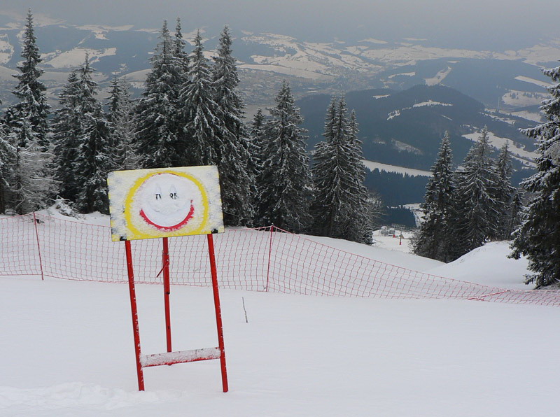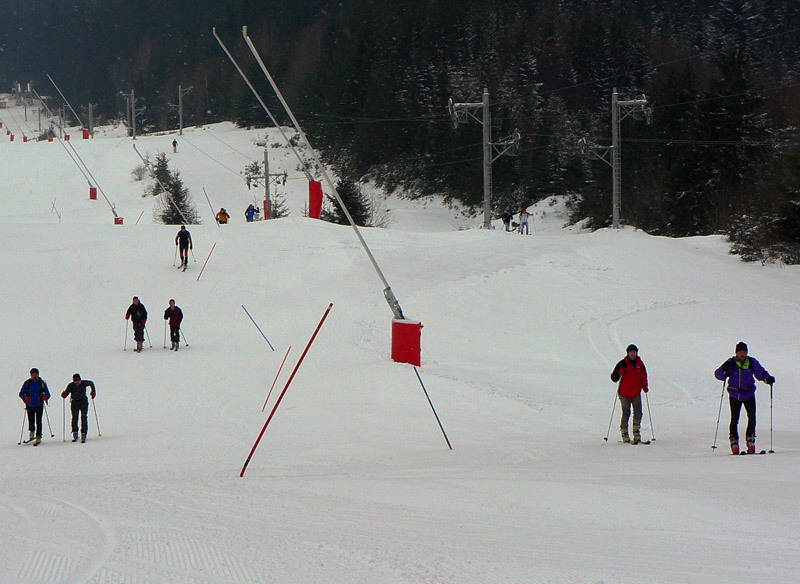 Sobota 22. januára 2011, hádam je konečne po dvojtýždňovom odmäku, ktorý zlízal všetko čo sa dalo aj z toho mála čo ostalo po odmäku vianočnom :-( Skialpové preteky v tejto mizérii? Jedine po zjazdovke na „umeláku“. Teplota síce klesla k -8 stupňom, ale snehu nikde. Tých pár milimetrov prašanu len kryje skaly a ľad na zjazdovke. Ski park akurát dnes po nútenej pauze zahajuje prevádzku v dolnej časti, lenže v hornej nie je zasnežovanie a podľa toho to tam aj vyzerá. Šutre, čučoriedky, pníky trčia zo zvyškov firnu, niektoré ani netrčia a o to je to horšie. V poslednom strmom úseku aj ľadom podstlaté, niektorí si na ňom aj ustlali.