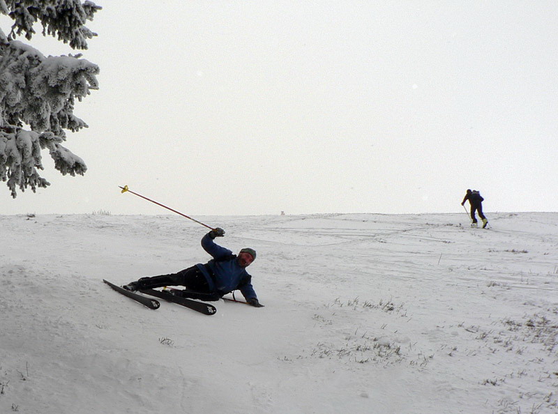 Aspoň sa ukáže, kto „nie je otrokom svojich lyží“ a nebude ich šanovať. Pravidlá sú jednoduché: štart až dolu, obrátka až hore, cieľ až pri bare :-) A až o 15:00, čo je od deviatej od rána dosť výživné – veď maratón. Kontroly žiadne, všetko na čestné slovo. Najlepší to dali 6 až 7 krát. Cieľová rovinka - serpentínka nad chatou bola tiež riadne iskrivá, čerstvý poprašok všetko pekne zakryl, až kým tade niekto na lyžiach neprešiel, no fuj. Zamračené a trochu vetríka spoza kopca asi väčšine vyhovovalo, lebo keď sa ukázalo slnko, niektorí si sťažovali, že sa začínajú prehrievať. Nakoniec sa všetkých asi 32 maratóncov (z toho 7 „tých krajších“) našlo v tom bare, niektorí sa dokonca pridali k pretekom až po štarte, tak sa im to zapáčilo. Zjazdárov bolo na svahu máličko, a keby aj nie, je dosť široký, aj šľapiek by sa oveľa viac zmestilo. Parádna akcia to bola, ideálna do snehovej mizérie. A ak nebude budúci rok taká utajená, isto viac ľudí príde. Len či sa pomestia v tom bare?