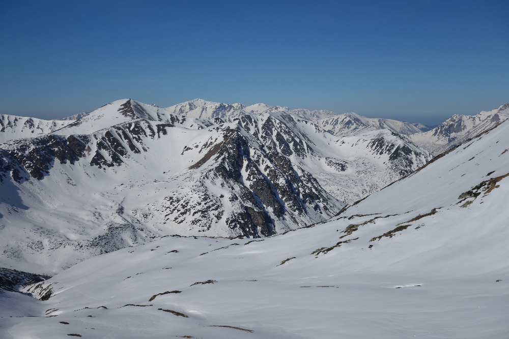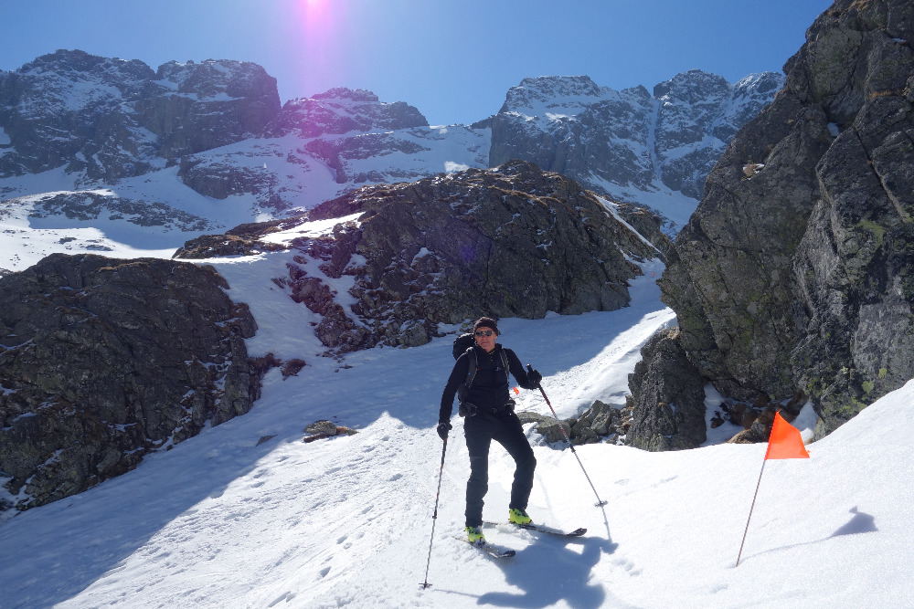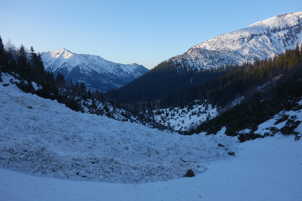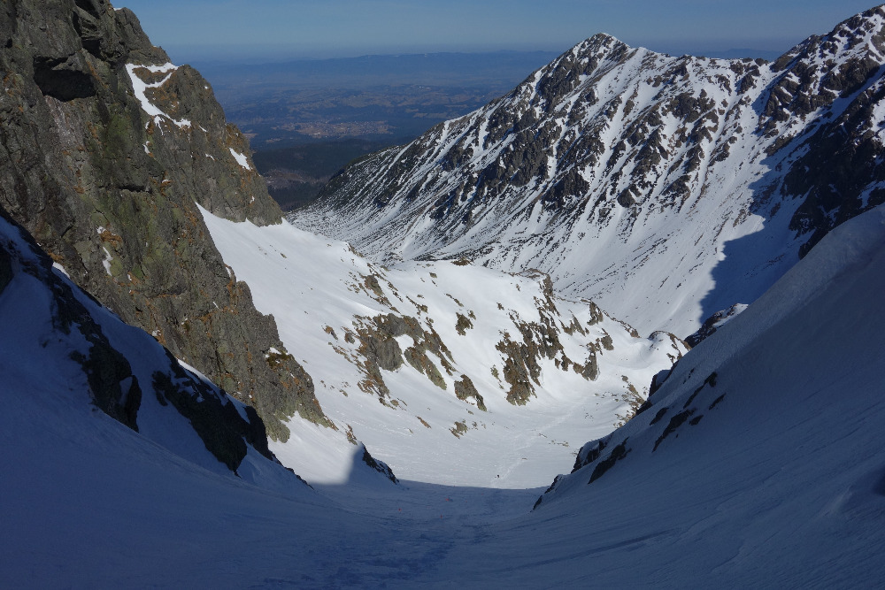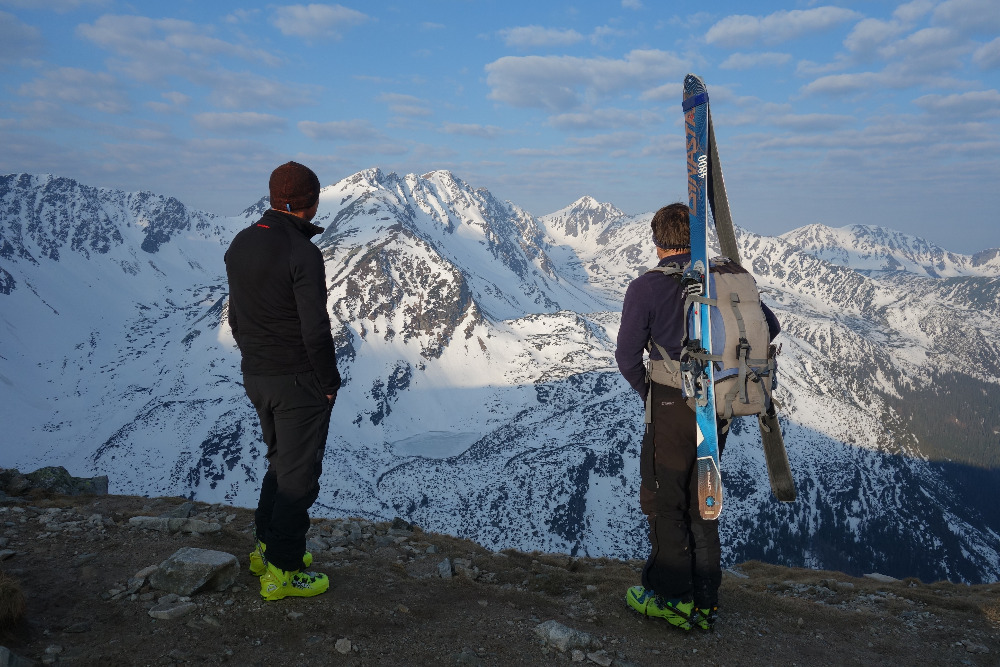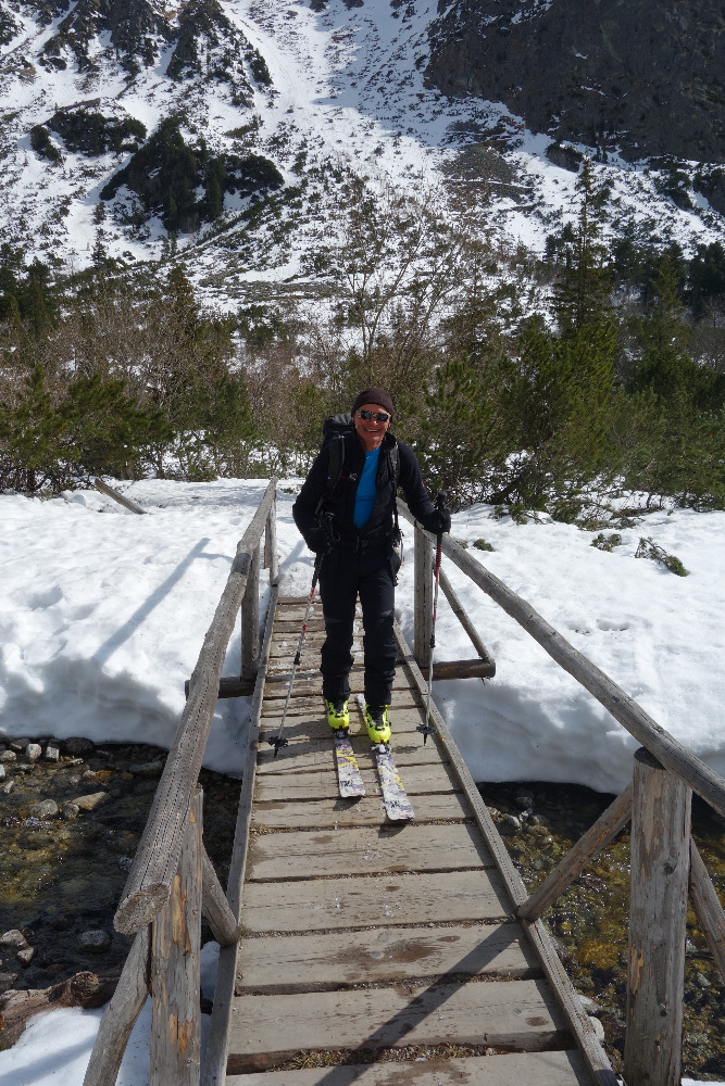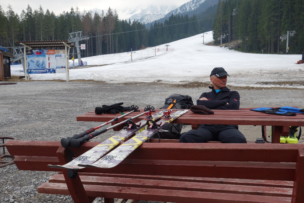 Lavínovo sme sa vybáli na Ornaku, kde sme trochu nechcene improvizovali a netrafili ideálnu líniu. Nakoniec sme z priestoru vycúvali a zobrali to cez už vytopenú Iwaniacku Przelecz, pomedzi poľské nedeľné páriky v teniskách a šortkách. Až na túto"skratku" a vytopené západné úbočie Rákoňa bola celá trasa na snehu s výnimkou drobných prenášačiek, ktoré sa pritrafia aj v strede zimy.