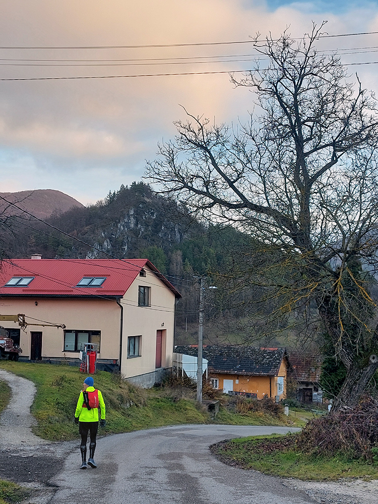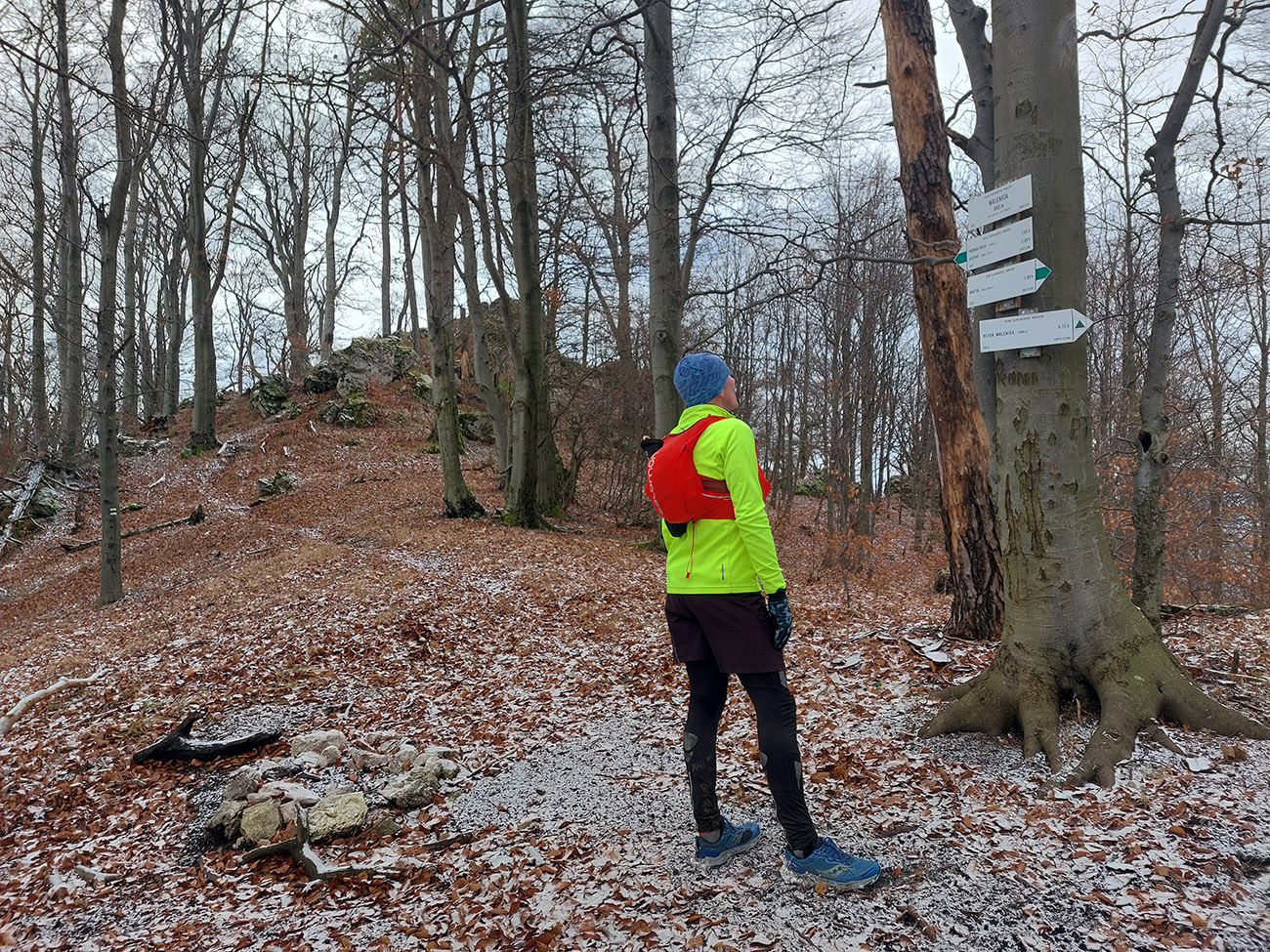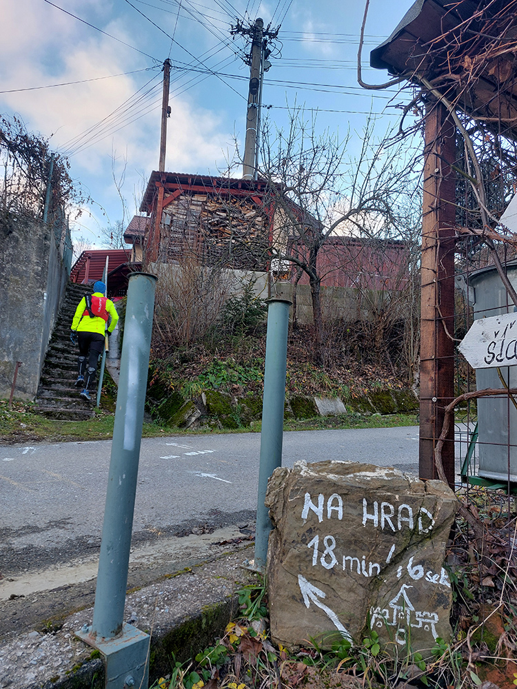 Ale samozrejme obchvatom, aby sa to rátalo. Cez niekoľko parádnych vyhliadkových braliek, takých typických pre Strážovské vrchy: Sokol, Košecký hrad, Rohatá skala, Ostrá Malenica, Jelenia skala. Takže by sa to mohlo teoreticky volať aj Strážovské vyhliadky mimo základný výber - druhá časť . Medzi vyhliadkami kadejaké cesty, za sucha inak príjemné, po predvianočných dažďoch ako kde. Niekde pod nohami sucho - lístie či šotolina, niekde blato topánky vyzúvalo, niekde trochu aj primrznutô bolo. Noc mala byť jasná, tak podľa predpovede to malo síce primrznúť všade, ale svine mraky dvihli teplotu nad nulu. Cez deň sa našťastie aspoň čiastočne odmračilo, tak po sivých dňoch sme mali aspoň trochu farebno. Takže v konečnom dôsledku fajne bolo, takto na koniec roka, aj keď zlemravené telá nás hore prudkým brzdili akosi viac, ako sme zvyknutí. Len ma hodinky ojebabrali a ktovie prečo začali merať v Ilave až niekde na sídlisku a nie hneď na stanici – tak ani ultra to nie je dole v animácii. Ale v čase slnovratovom aj to sa ráta. Takže gpx je hore, ak by si to niekto chcel zopakovať, a ďalej stručný popis toho, čo je tu:
